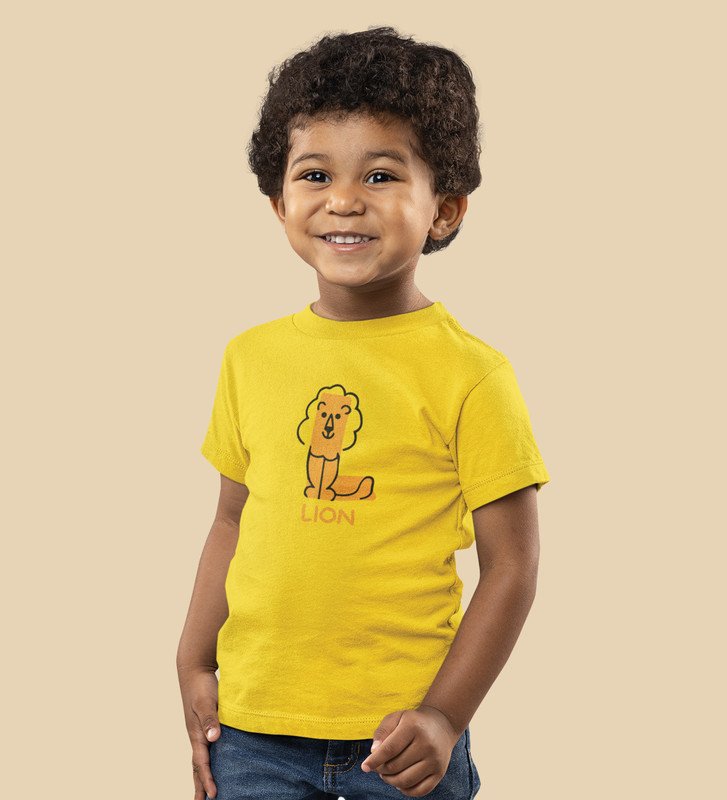 Lazy Lion, Boys Printed Crew Neck Tshirt (Yellow)
