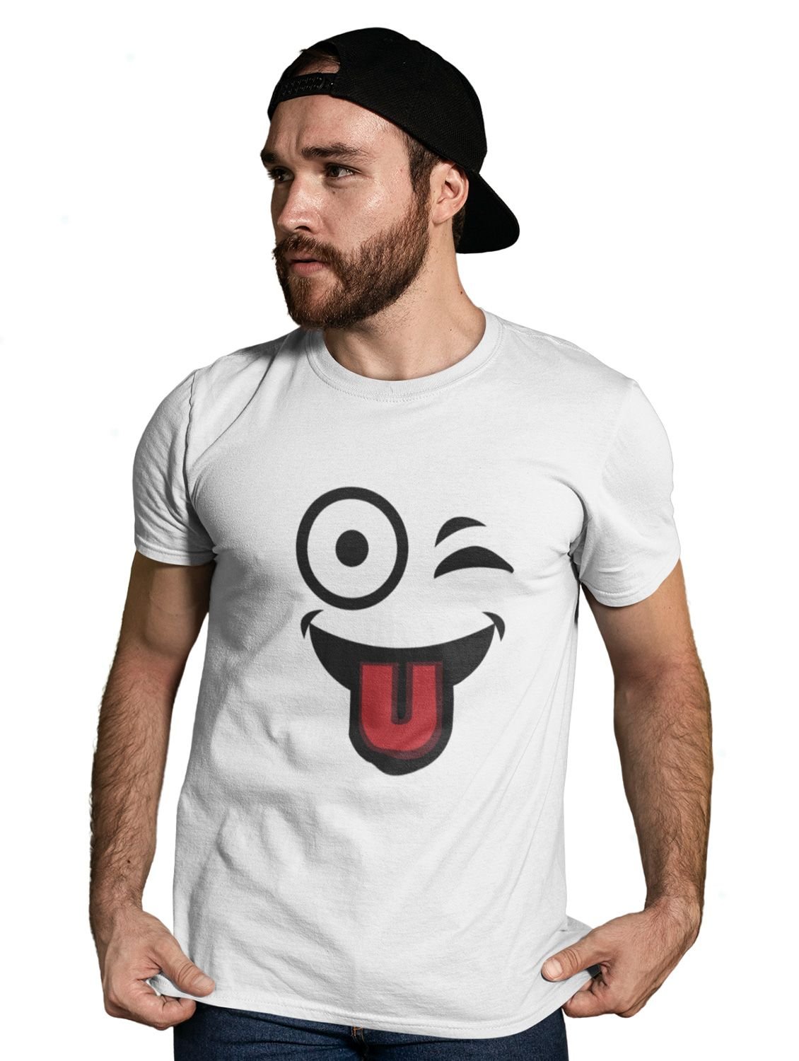 Left Eye Blink Emoji T-shirt (White) - Clothes for Emoji Lovers -Foremost Gifting Material for Your Friends and Close Ones
