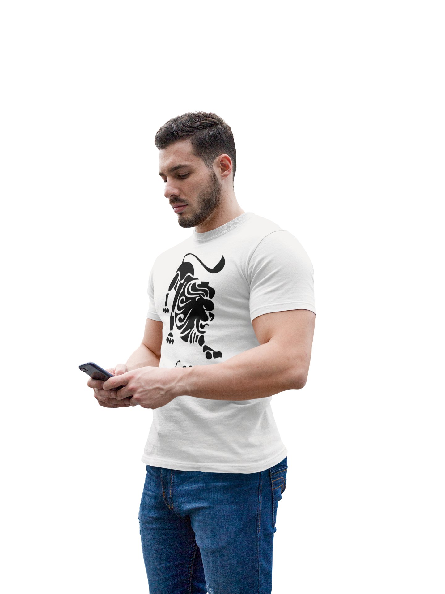 Leo (BG Black) (White T) - Printed Zodiac Sign Tshirts - Made especially for astrology lovers people