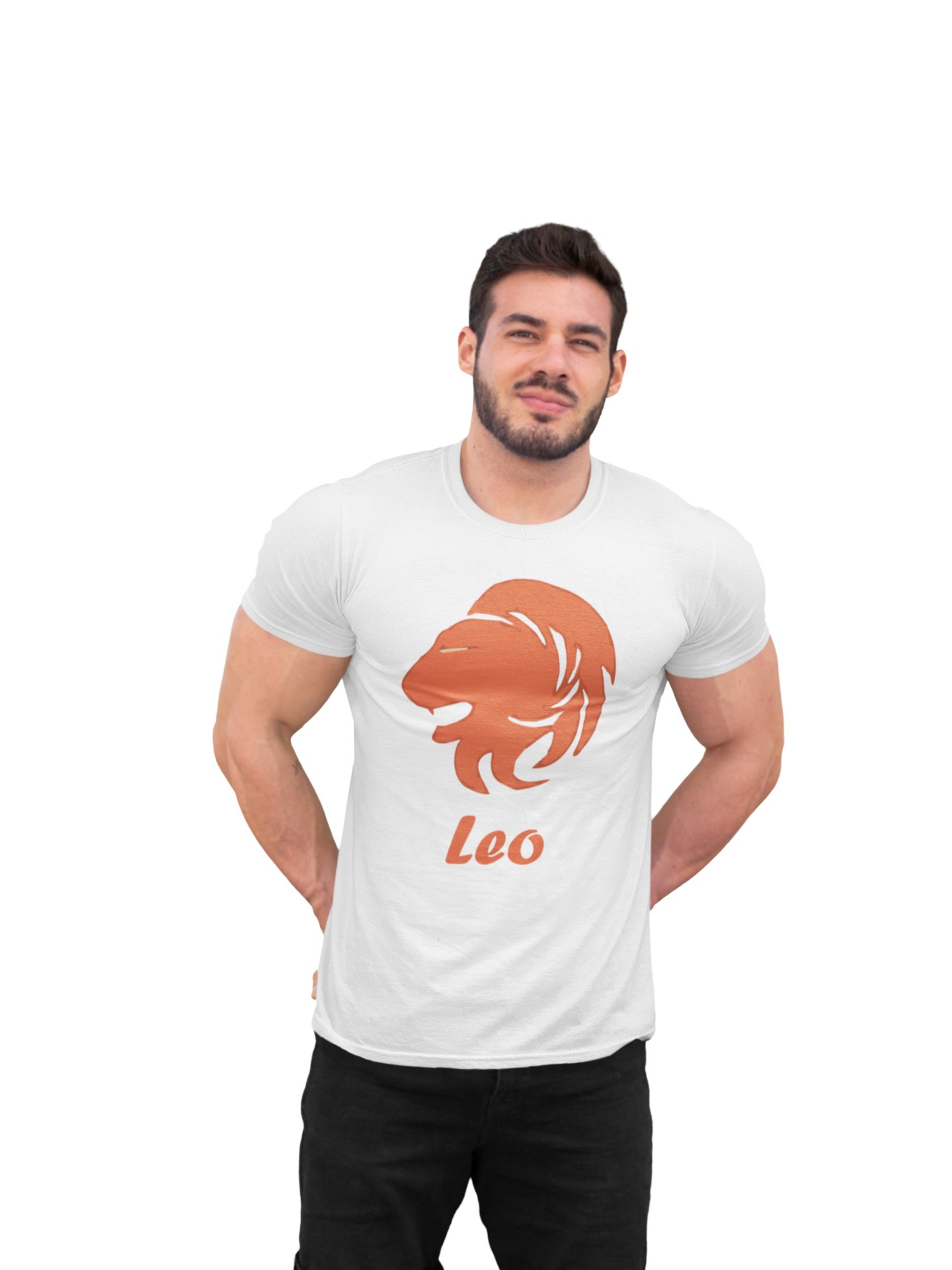 Leo (BG Orange) (White T) - Printed Zodiac Sign Tshirts - Made especially for astrology lovers people