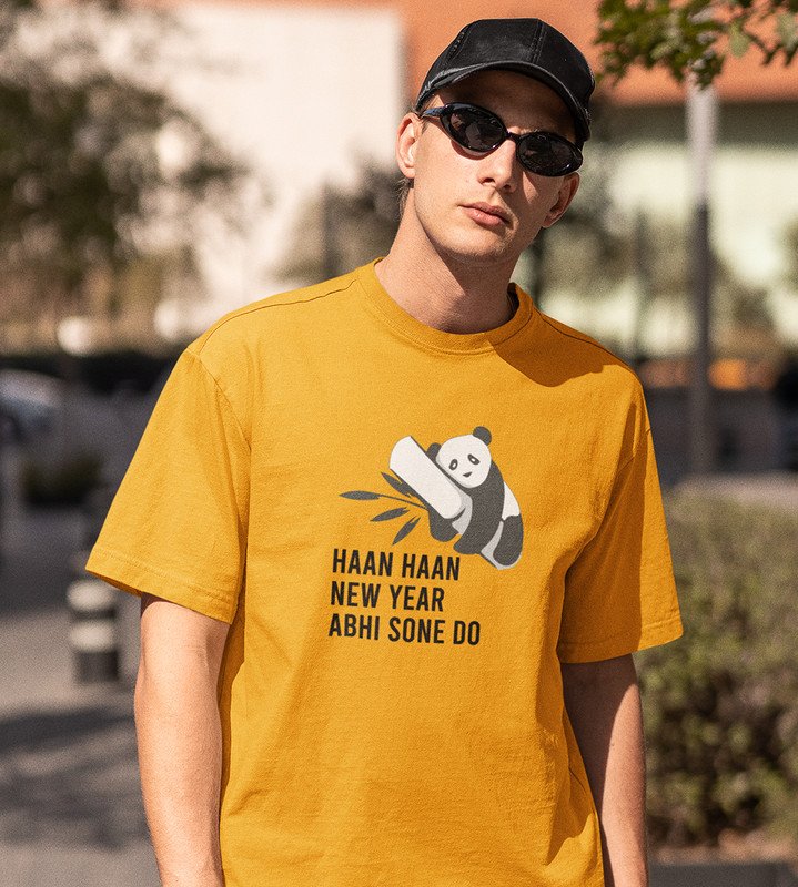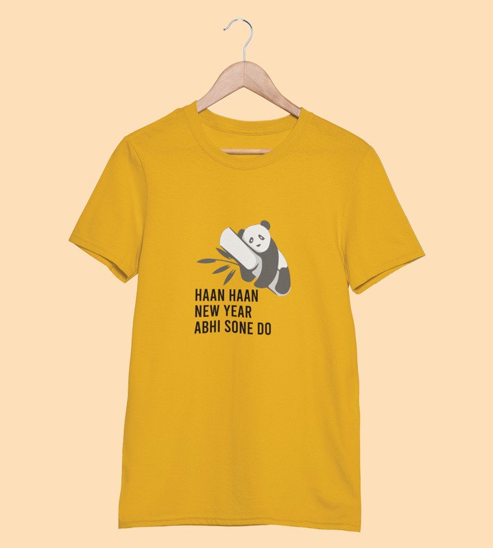 Let Me Sleep Yellow New Year Printed T-shirt For Mens