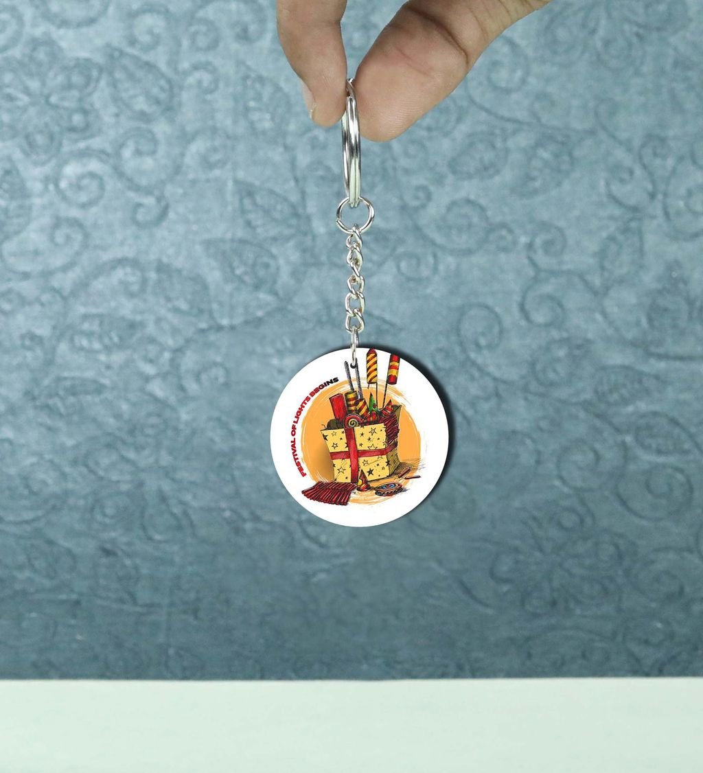 Let the Festival of Lights Begin with Crackers Printed Round Keychain Pack of 2
