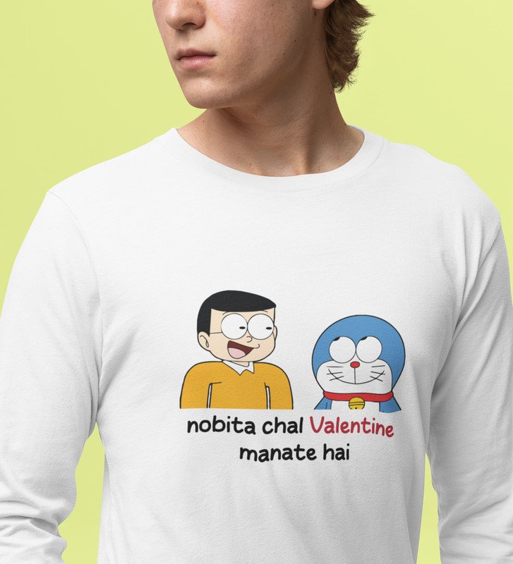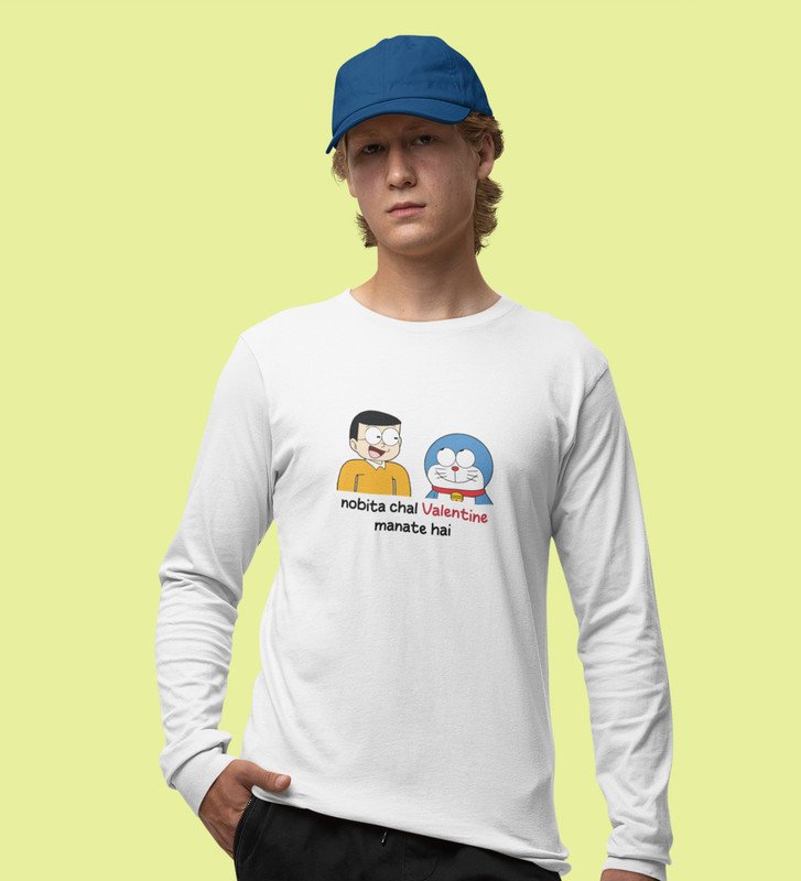 Let's Celebrate Valentine: Printed (white) Full Sleeve T-Shirt For Singles