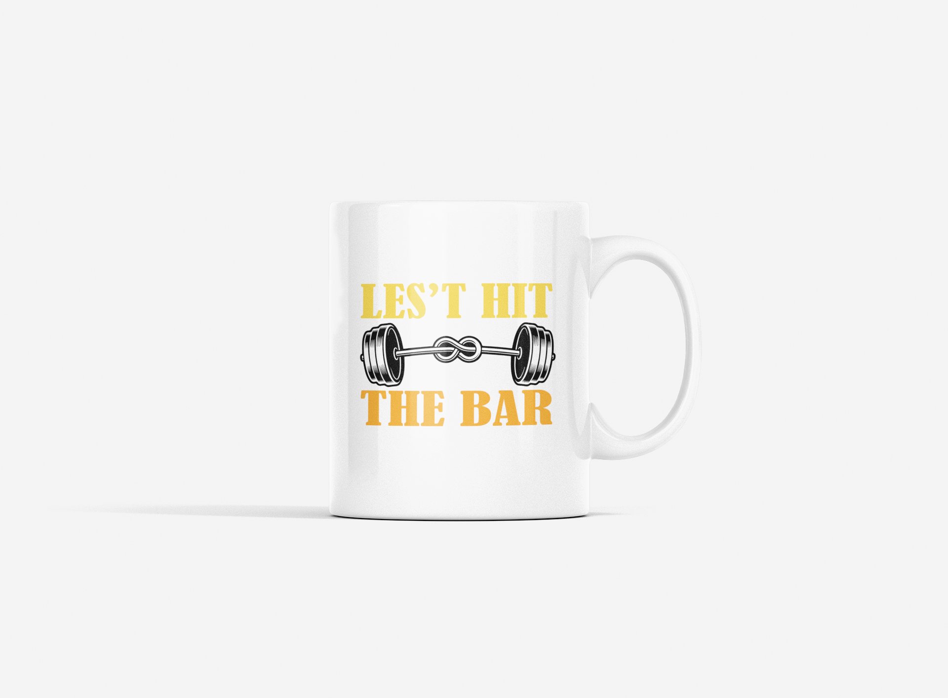 Let's Hit The Bar - gym themed printed ceramic white coffee and tea mugs/ cups for gym lovers