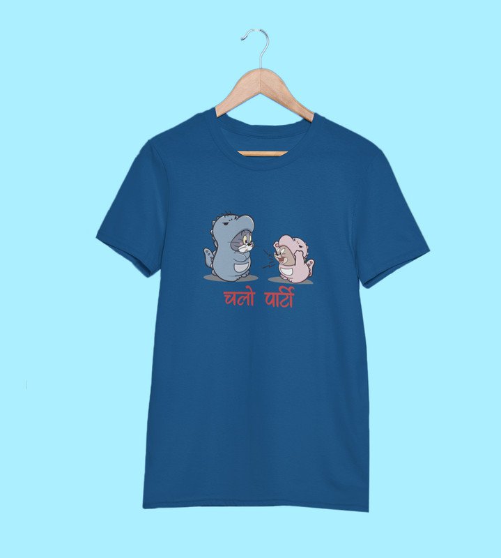 Let's Party Blue Graphic Printed T-shirt For Mens Boys
