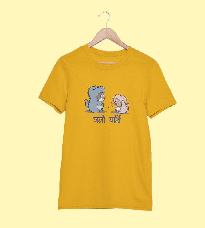 Let's Party Yellow Graphic Printed T-shirt For Mens Boys