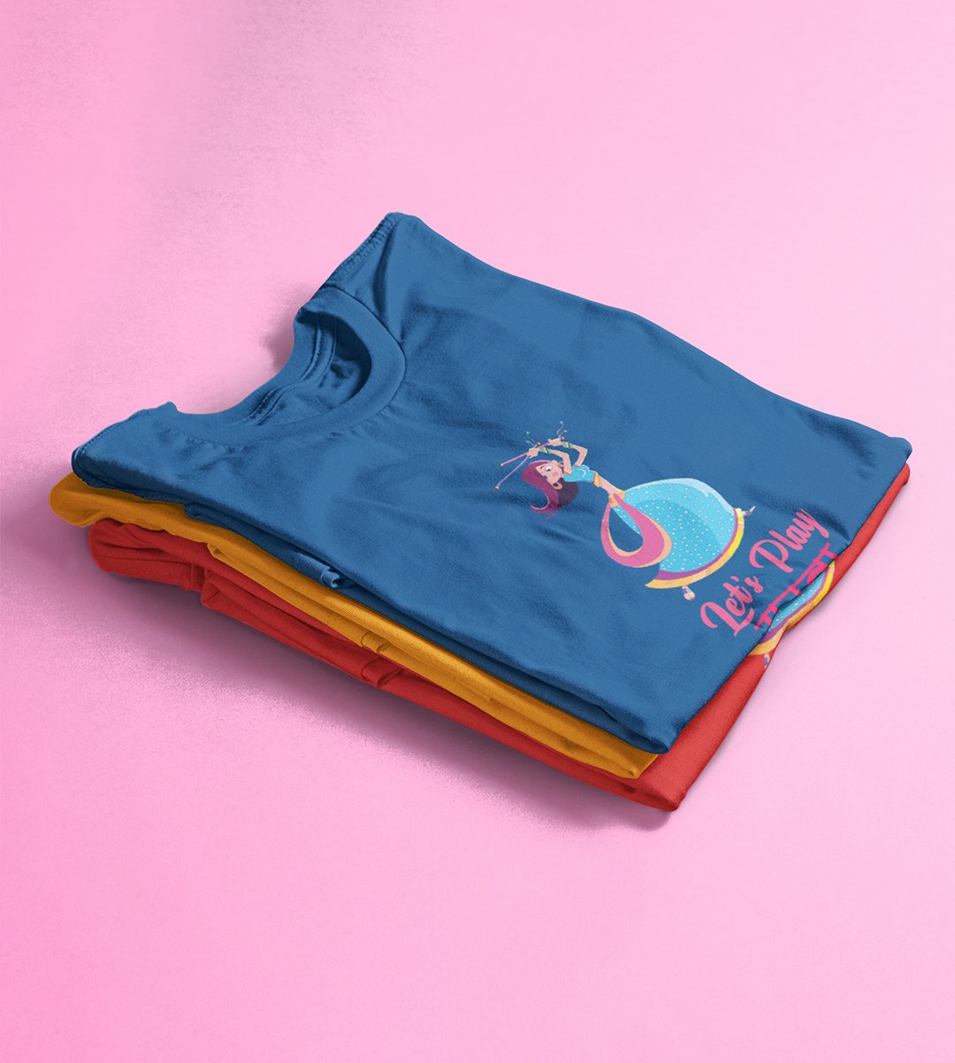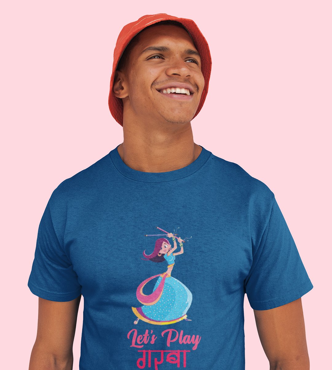 Let's play garba printed unisex adults round neck cotton half-sleeve blue tshirt specially for Navratri festival/ Durga puja