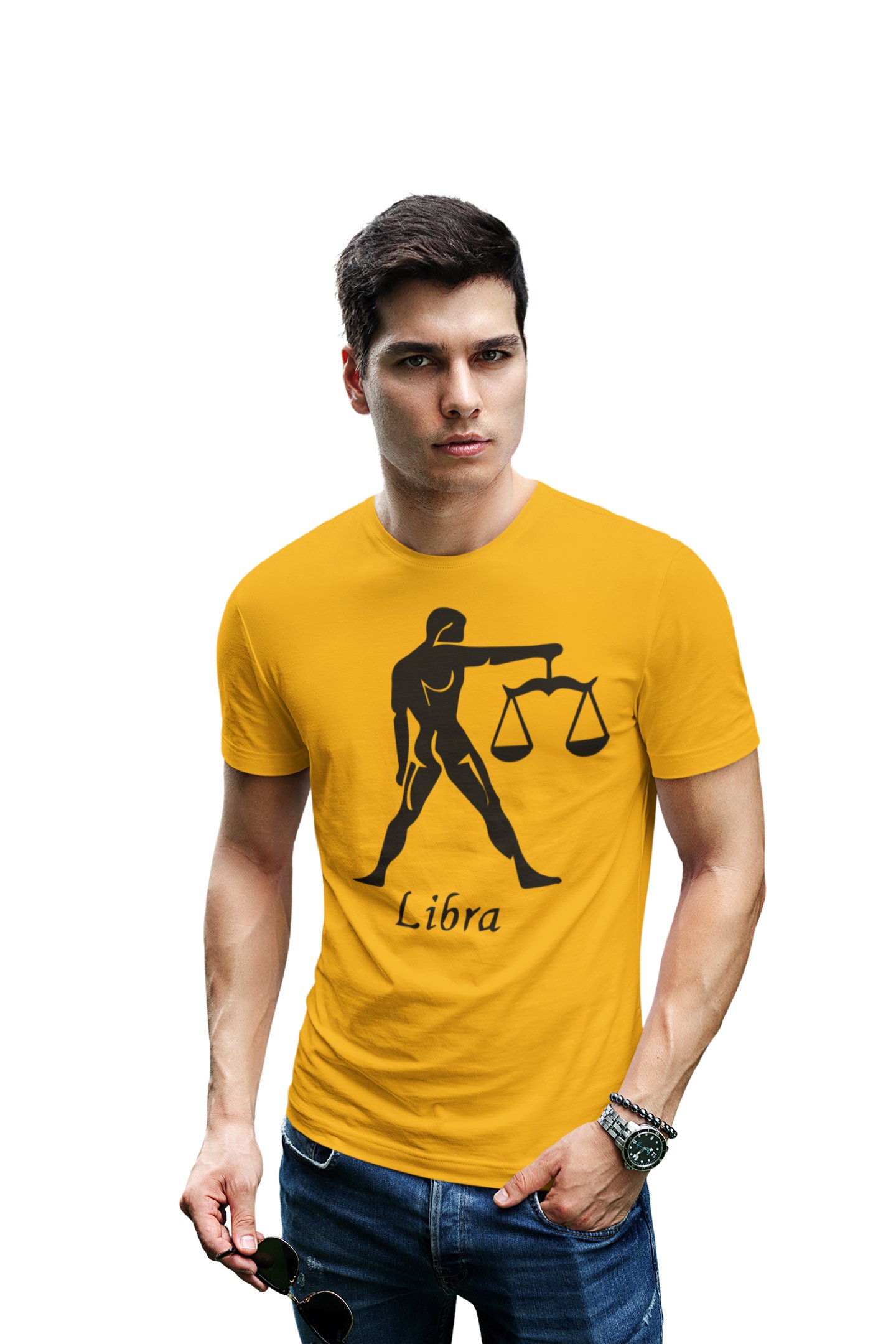 Libra (BG Black) (Yellow T) - Printed Zodiac Sign Tshirts - Made especially for astrology lovers people
