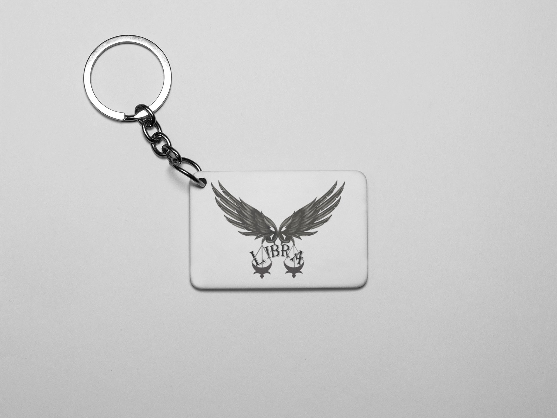 Libra symbol (Text above) - Zodiac Sign Printed Keychains For Astrology Lovers(Pack of 2)