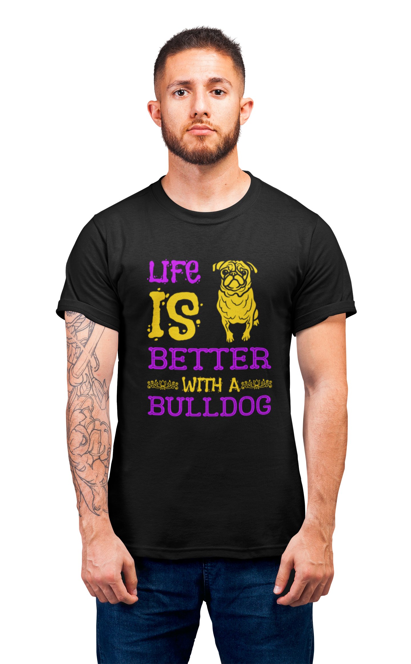 Life is better with a bulldog - printed stylish Black cotton tshirt- tshirts for men