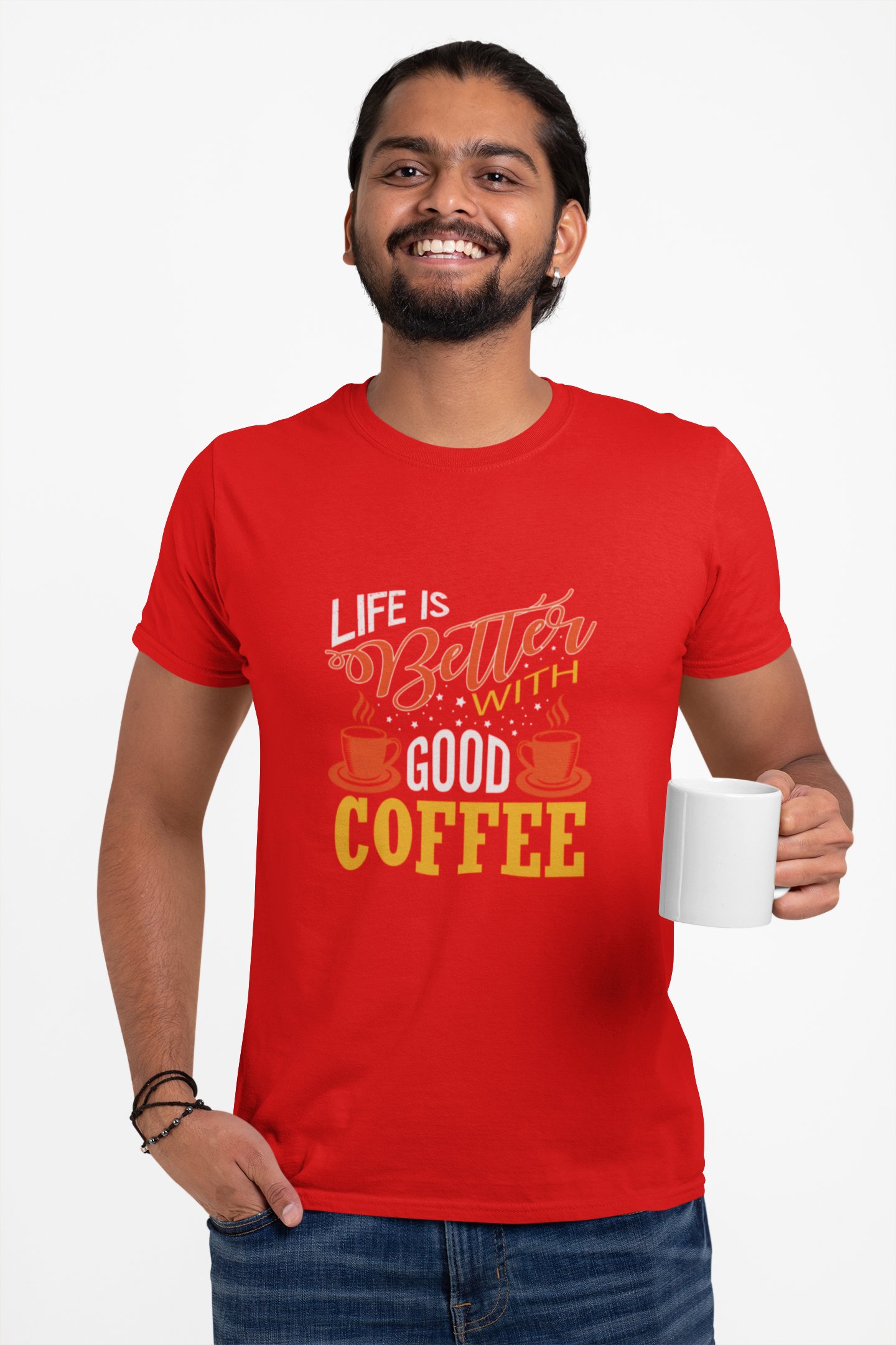 Life is better with good Coffee - Red - printed t shirt - comfortable round neck cotton.