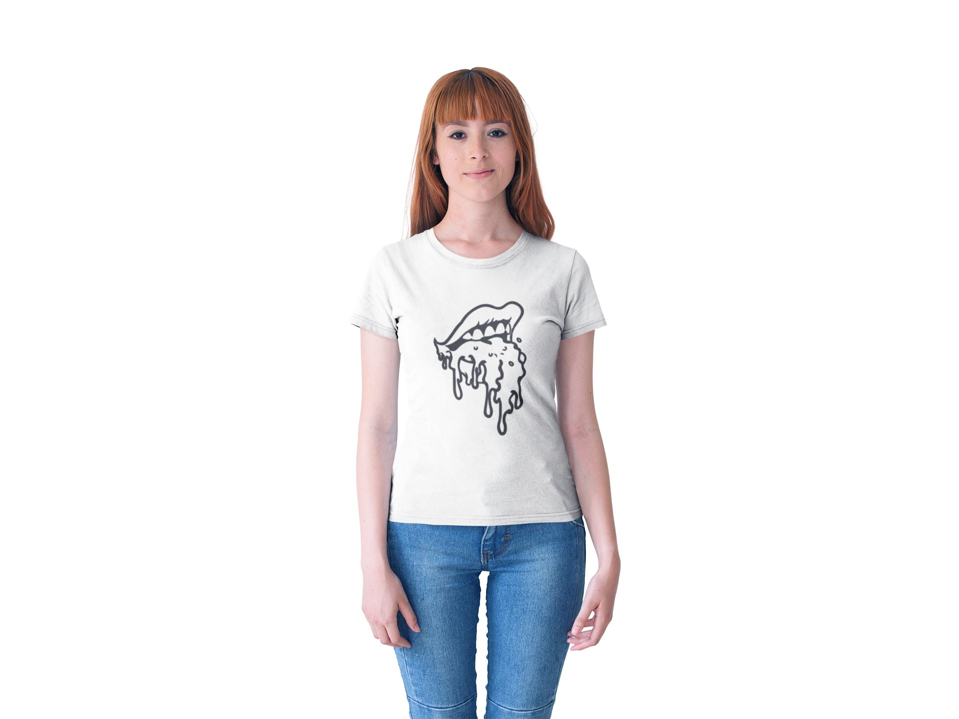 Lips - Line Art for Female - Half Sleeves T-shirt