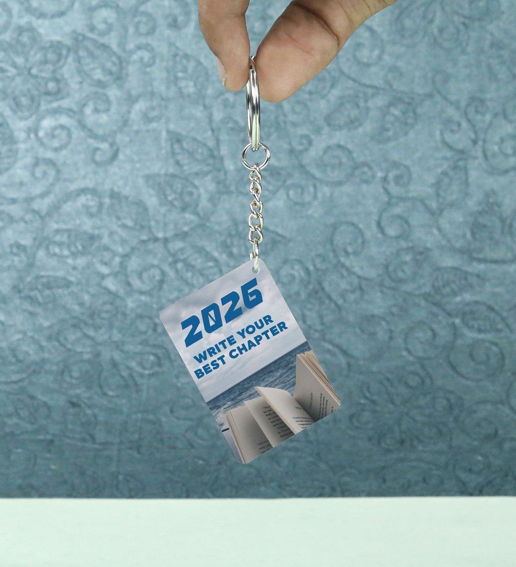 Literary Theme Keychain Encouraging You to Write Your Best Chapter in the Inspiring Year 2026 Printed Keychain Pack of 2.