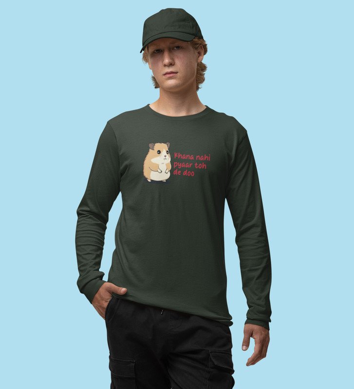 Little Hamster Wants Love: Attractive Printed (green) Full Sleeve T-Shirt For Singles