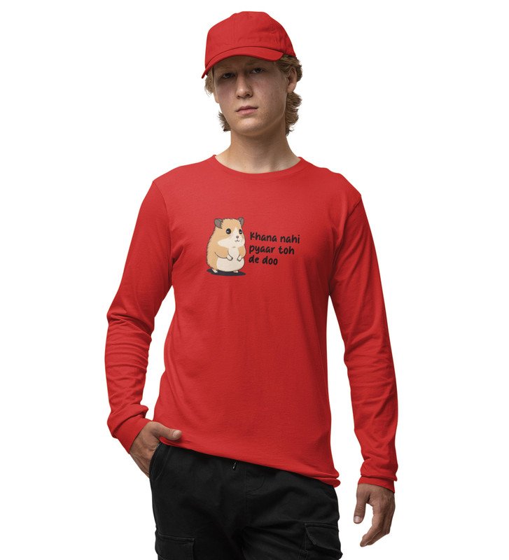 Little Hamster Wants Love: Attractive Printed (red) Full Sleeve T-Shirt For Singles