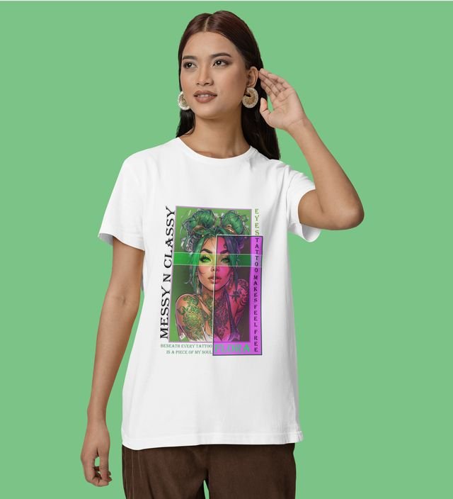 Unfold a story of ink and elegance with the Tattooed Petals T-Shirt.This design merges delicate floral beauty with bold tattoo artistry, symbolizing strength wrapped in softness.Each petal tells a tale of resilience, growth, and artistic rebellion.Wear it as a tribute to the blooming soul within.