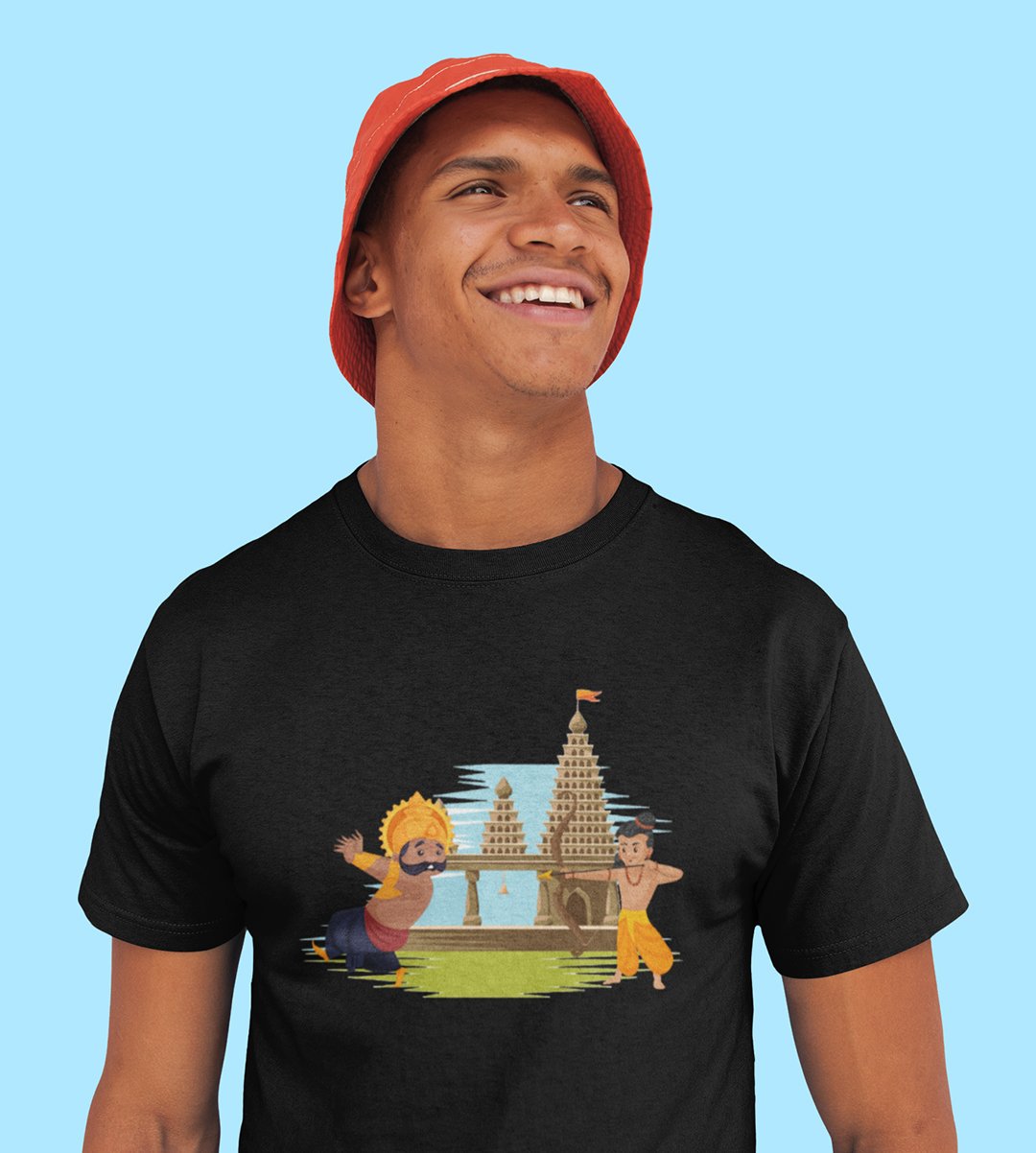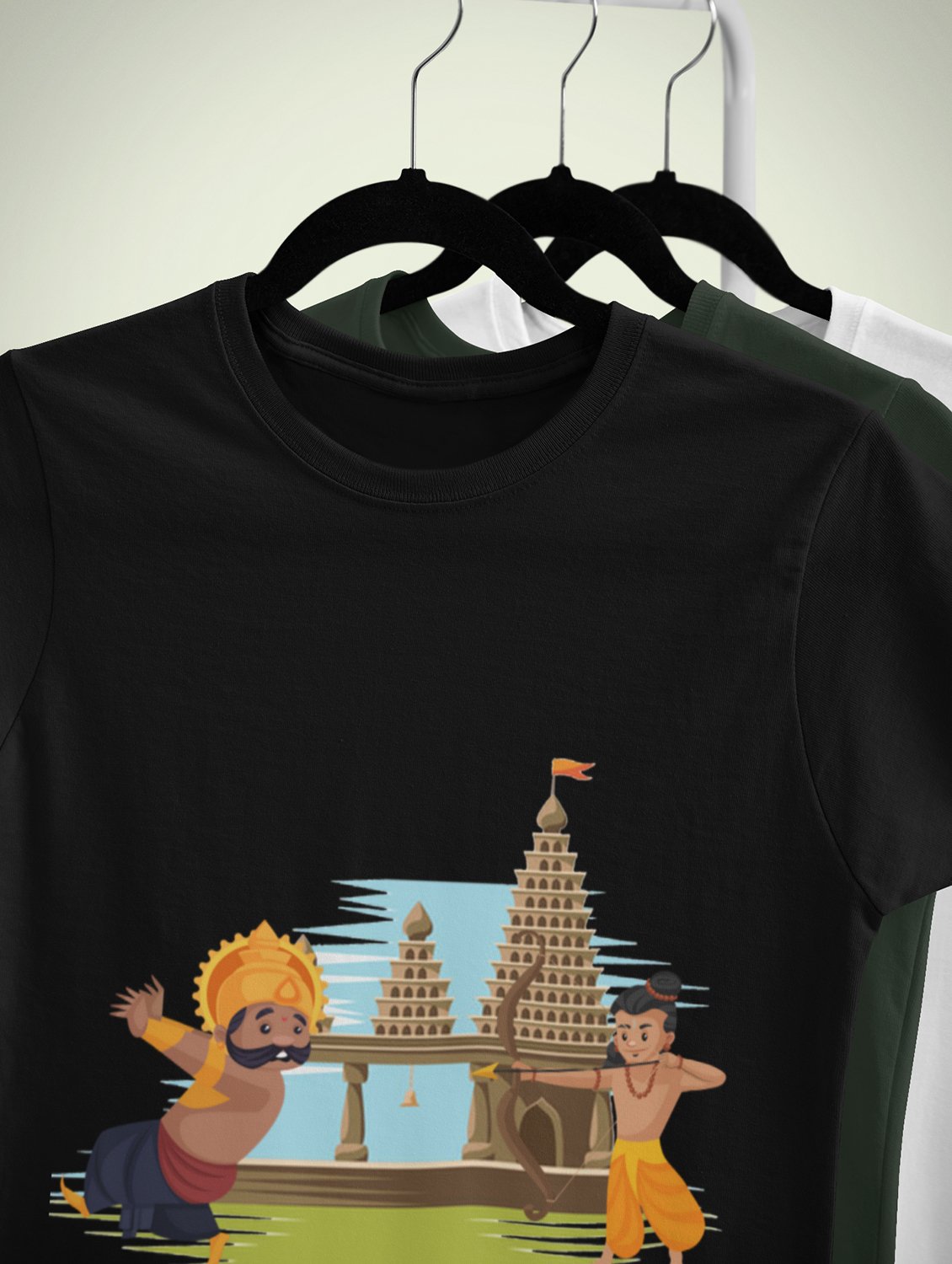 Lord Ram and ravan animated printed unisex adults round neck cotton half-sleeve black tshirt specially for Navratri festival/ Durga puja