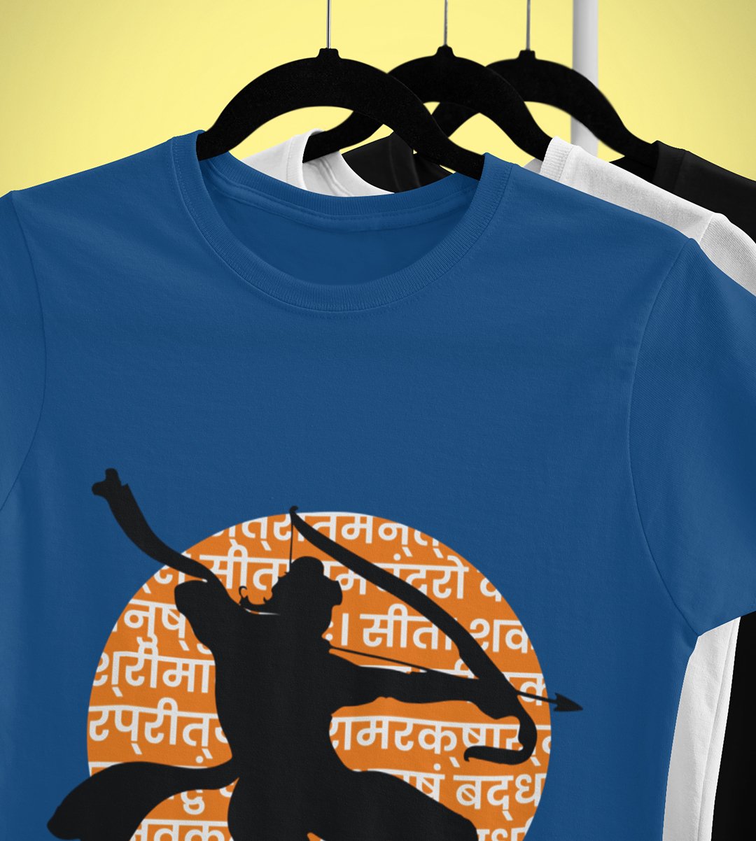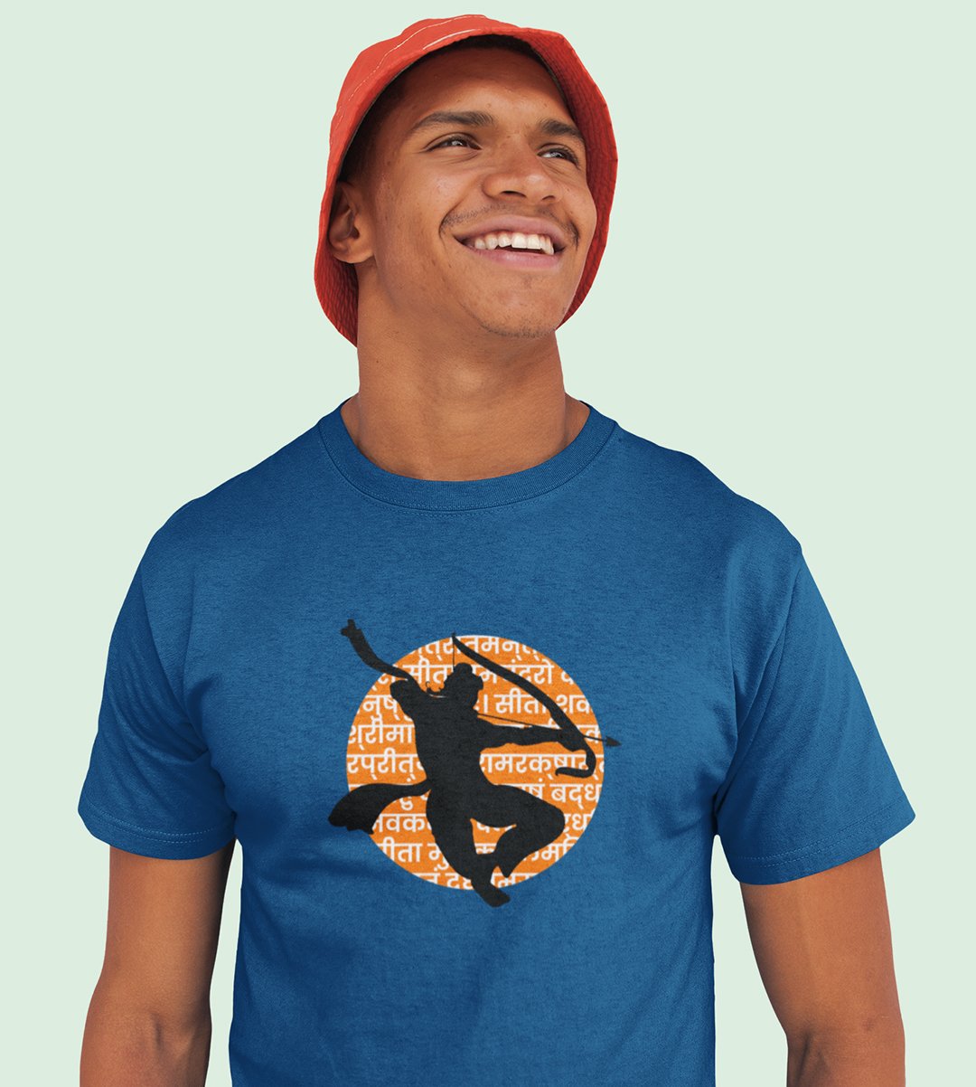 Lord Ram (black shadow) printed unisex adults round neck cotton half-sleeve blue tshirt specially for Navratri festival/ Durga puja