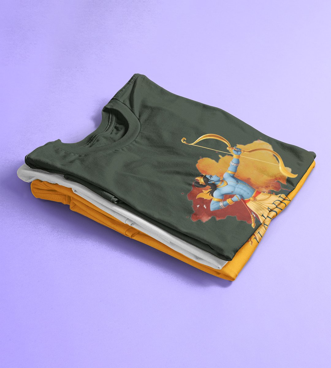 Lord ram printed unisex adults round neck cotton half-sleeve green tshirt specially for Navratri festival/ Durga puja