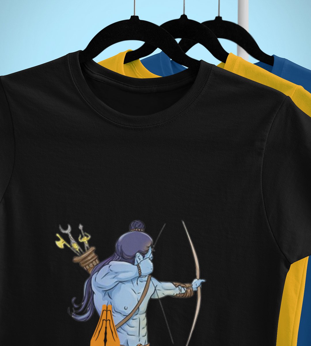 Navratri is a very auspicious festival for hindus. It takes place at the beginning of October and sometimes September. Enjoy the 9 days of festivities with full zeal and make yourself submerged in the love of Maa Durga. Navratri is also known as Durga Puja. And with this Tees, you can shine like a star during this festive season with our navratri themed cotton half sleeved Tshirts. You can pair our t-shirts with trousers and denim of your choice and make it a weekday smart casual or weekend wear. This is durable. This tshirt is smooth and soft which makes you comfortable to wear during all seasons. The printing in it is durable and odourless. It has five sizes, S,M,L,XL,XXL. The Tshirt colour is intact even after repeated washes. It can be kept in your wardrobe and hangers. Please avoid washing mashine to clean this Tee, it may affect the print. Hand wash only. We have brought you many navratri related designs printed on our different colour Tshirts to choose from. Grab it now.