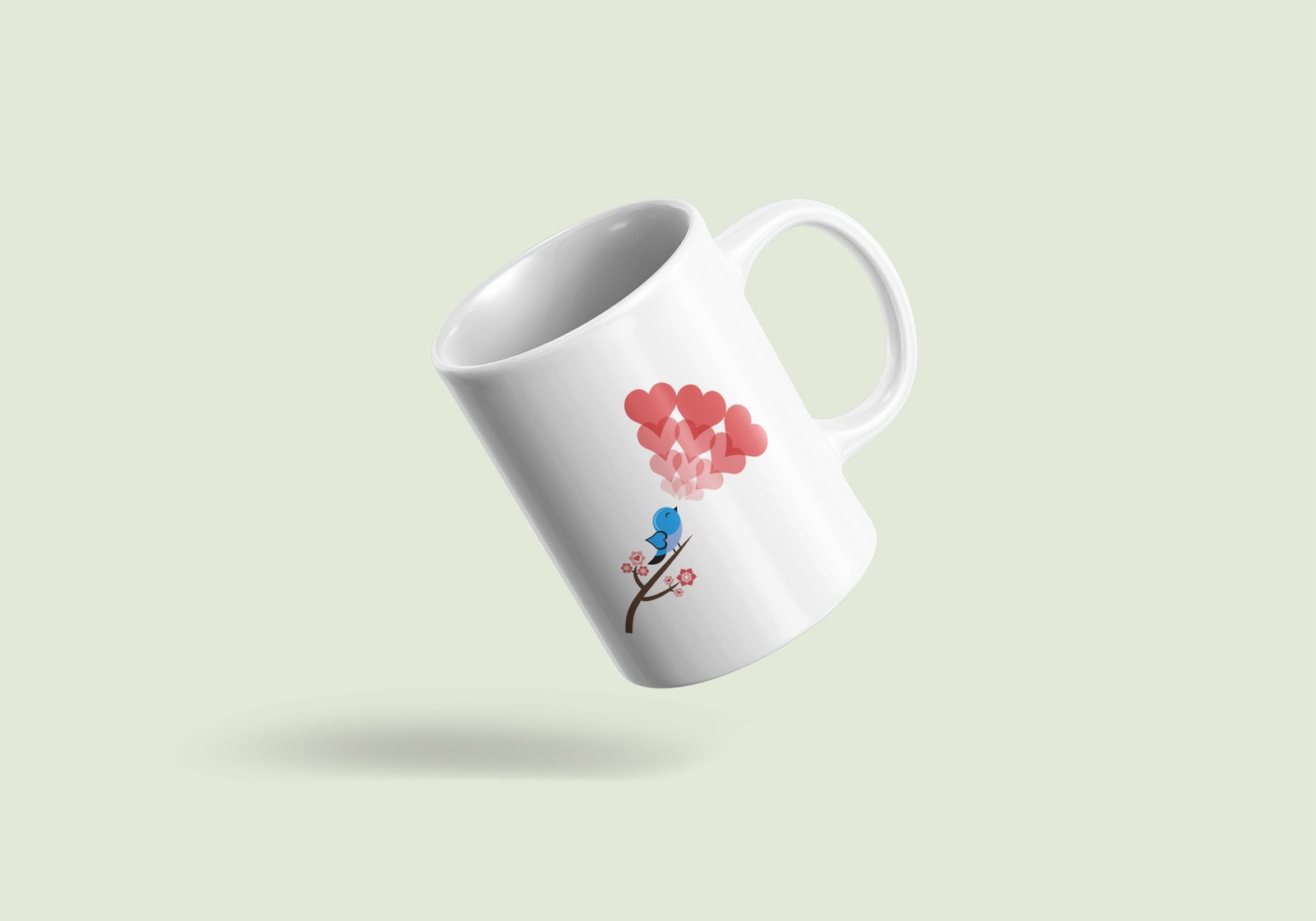 Love Bird On Branches - valentine themed printed ceramic white coffee and tea mugs/ cups