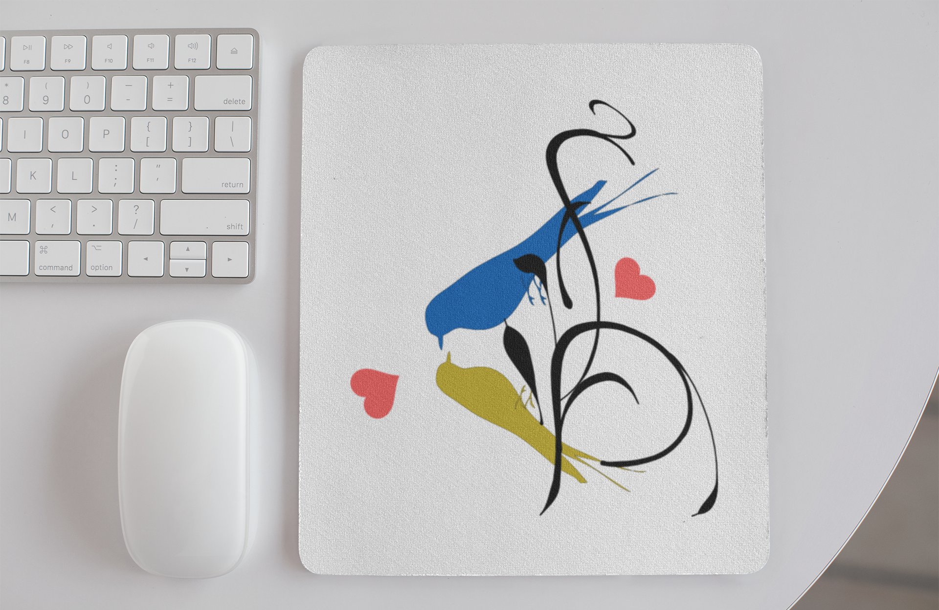 Love Birds With Cute Heart- Designable Printed Mousepads(20cm x 18cm)