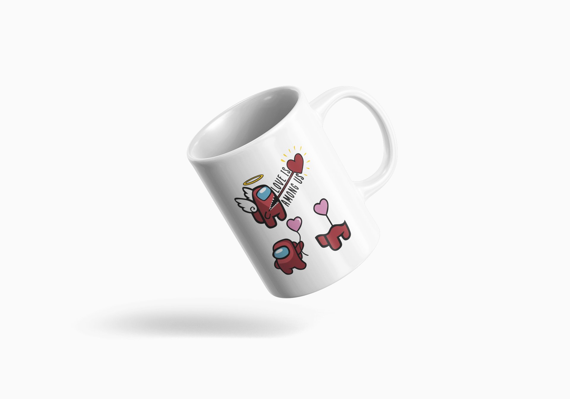 Love is among us, 3 balloons - animation themed printed ceramic white coffee and tea mugs/ cups for animation lovers