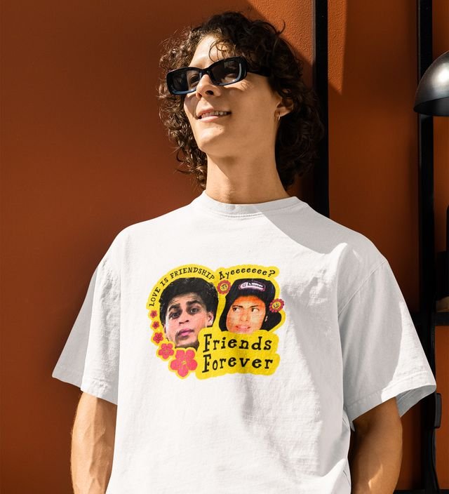Love Is Friendship White Round Neck Cotton Half Sleeved Men T-Shirt with Printed Graphics