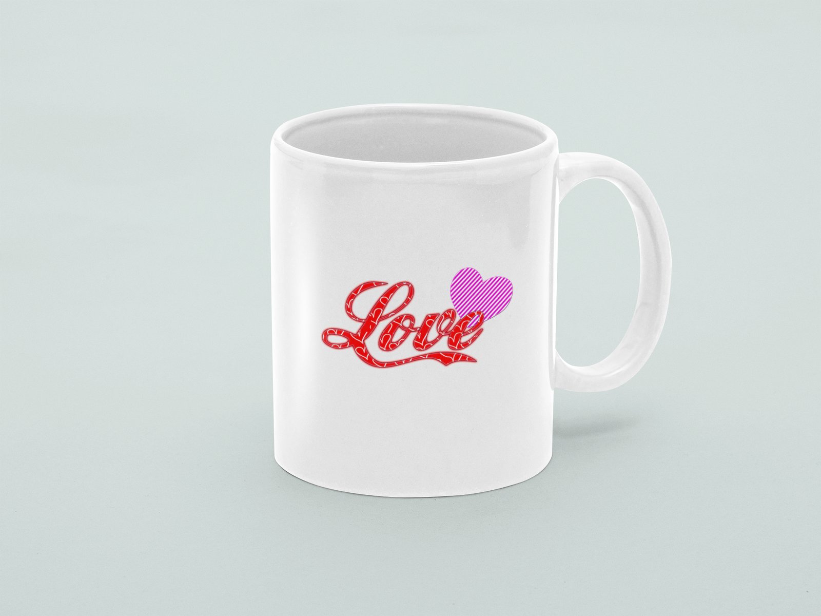 Love text with pink Heart - Printed Coffee Mugs For Valentines Day