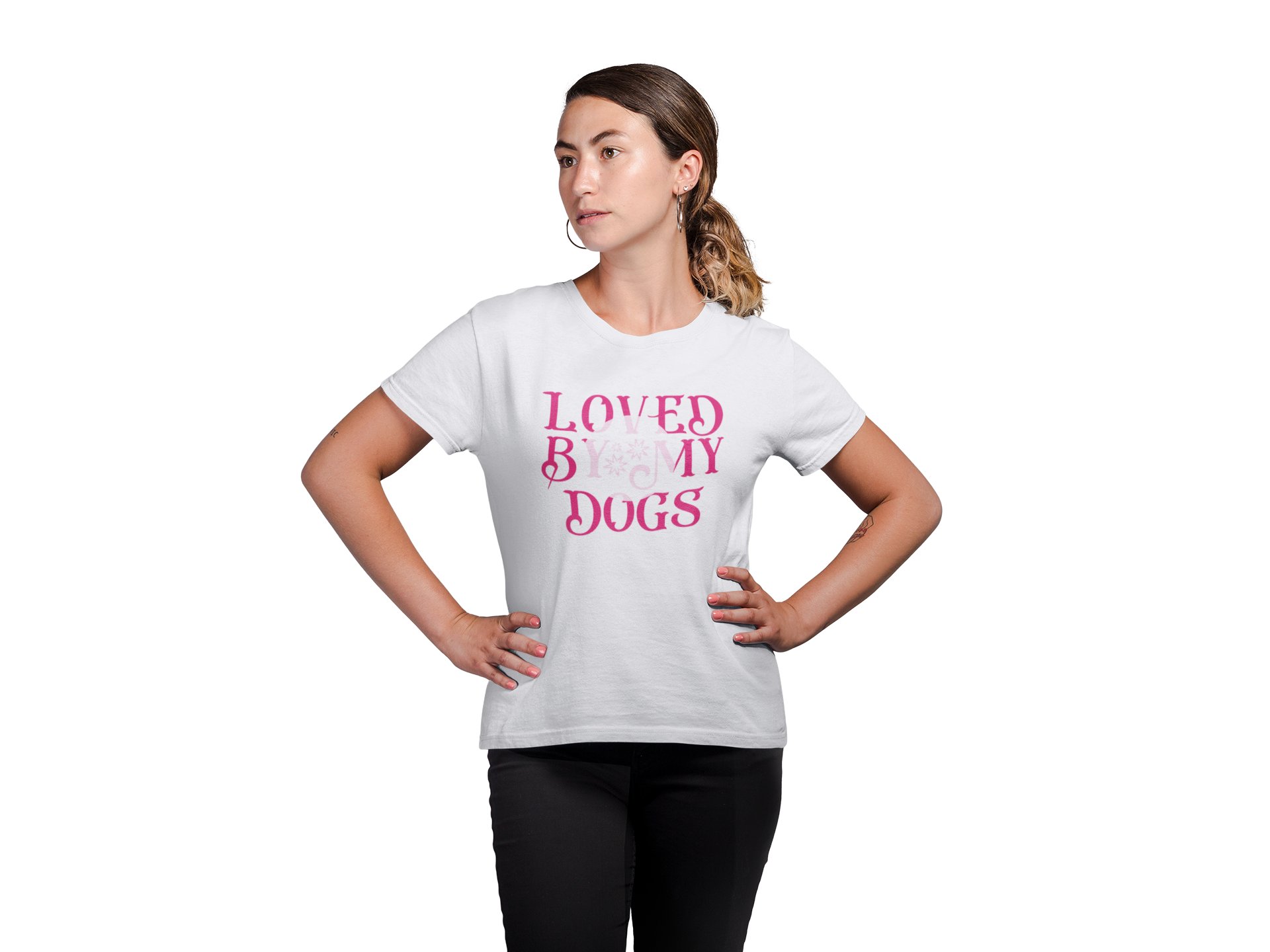 Loved by my dogs Pink Text -White -printed cotton t-shirt - Comfortable and Stylish Tshirt