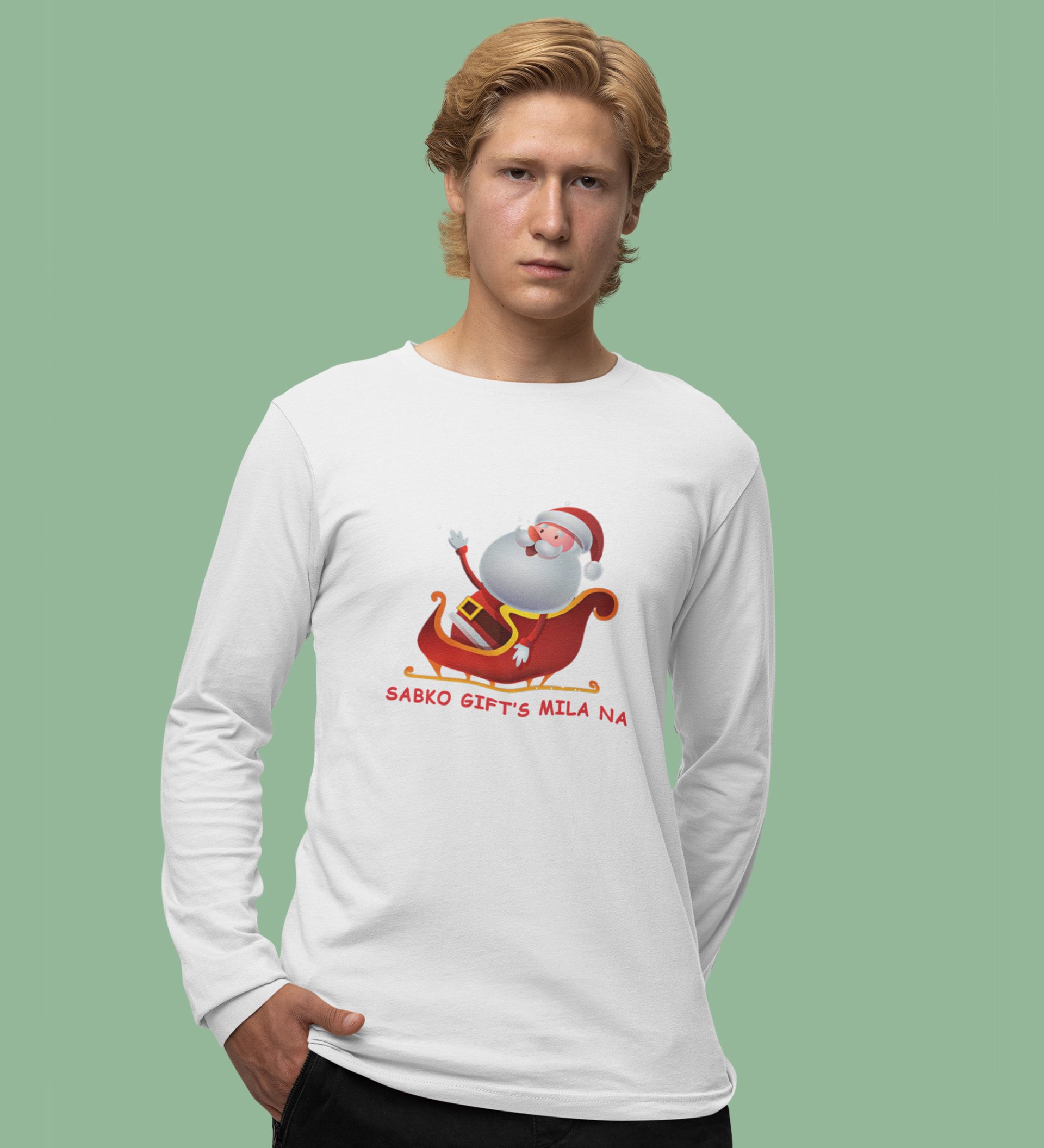 Lovely Santa: Cute And Beautiful DesignedFull Sleeve T-shirt White Best Gift For Boys Girls
