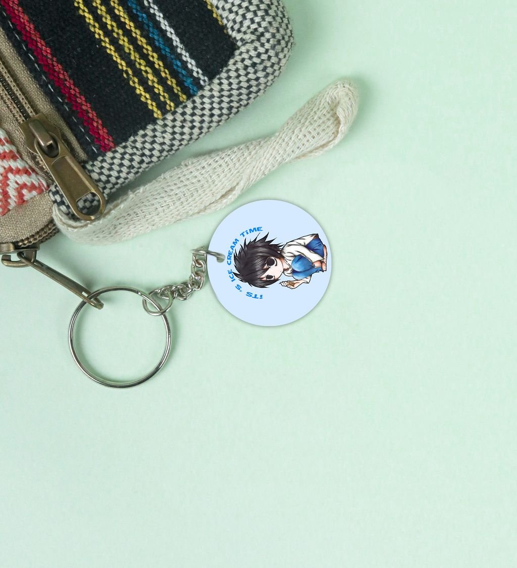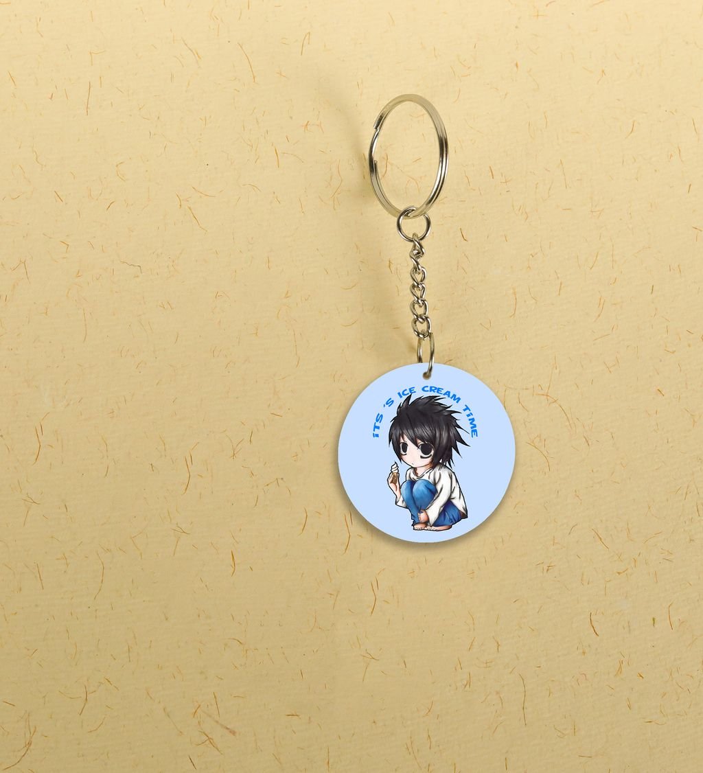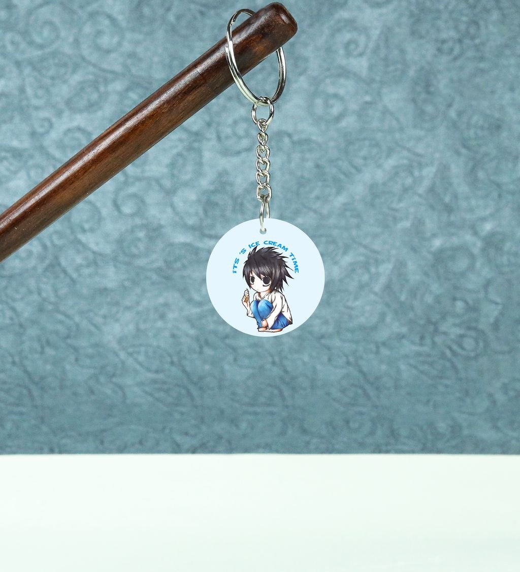 L's Ice Cream Time A Sweet Break for the Brilliant Mind Anime Printed Round Keychain Pack Of 2