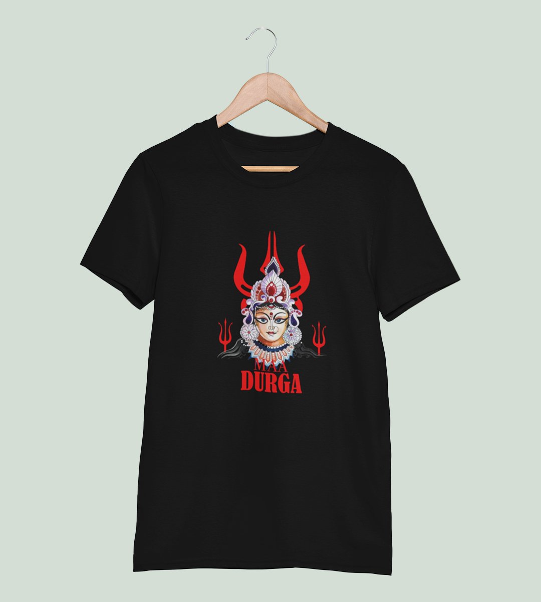 Maa Durga face printed unisex adults round neck cotton half-sleeve black tshirt specially for Navratri festival/ Durga puja