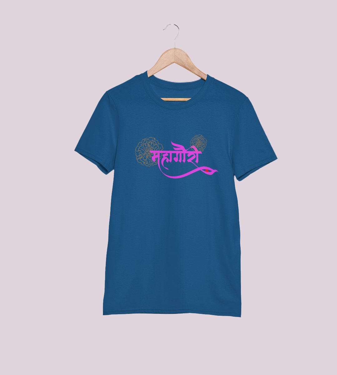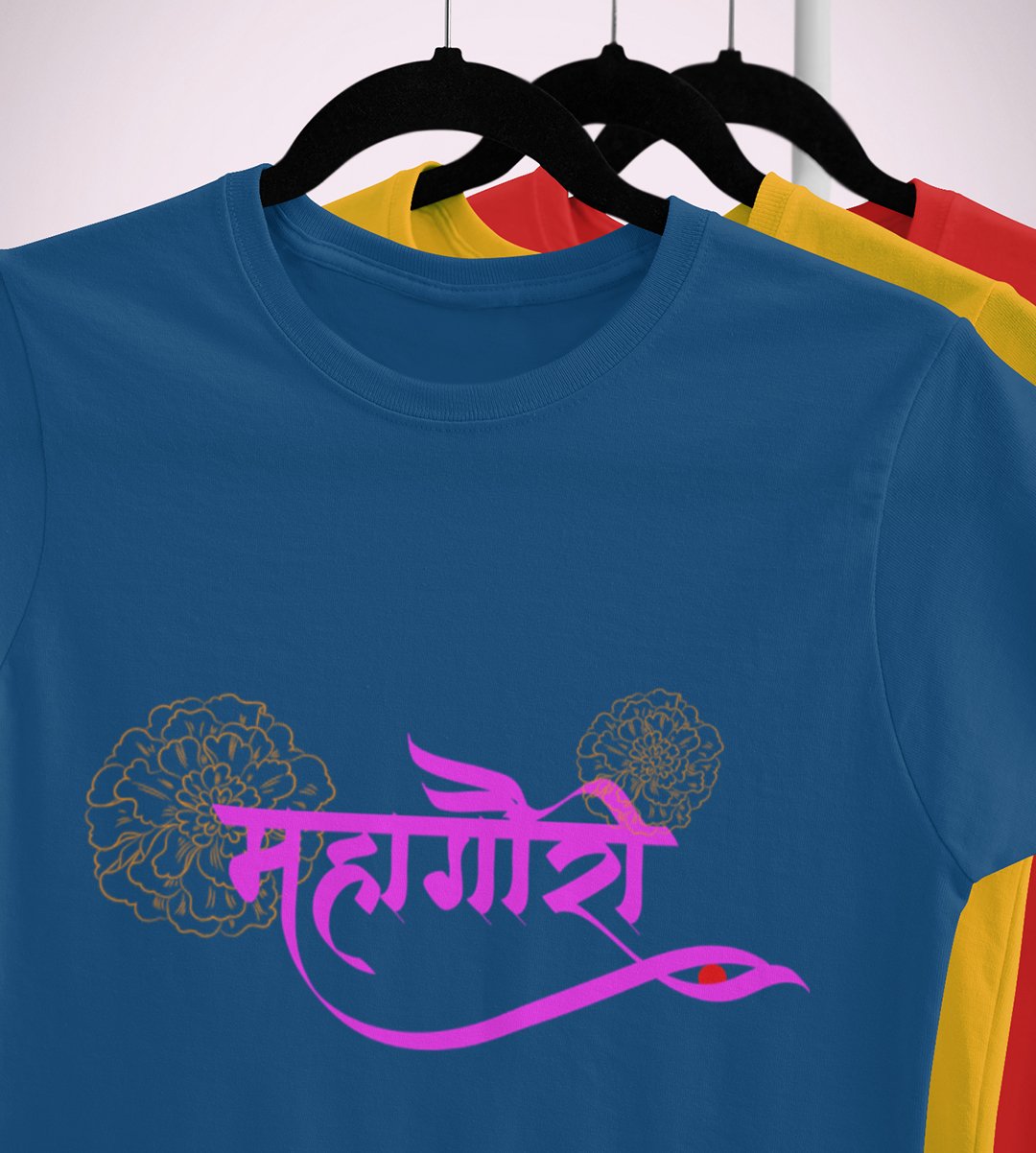 Mahagauri printed unisex adults round neck cotton half-sleeve blue tshirt specially for Navratri festival/ Durga puja