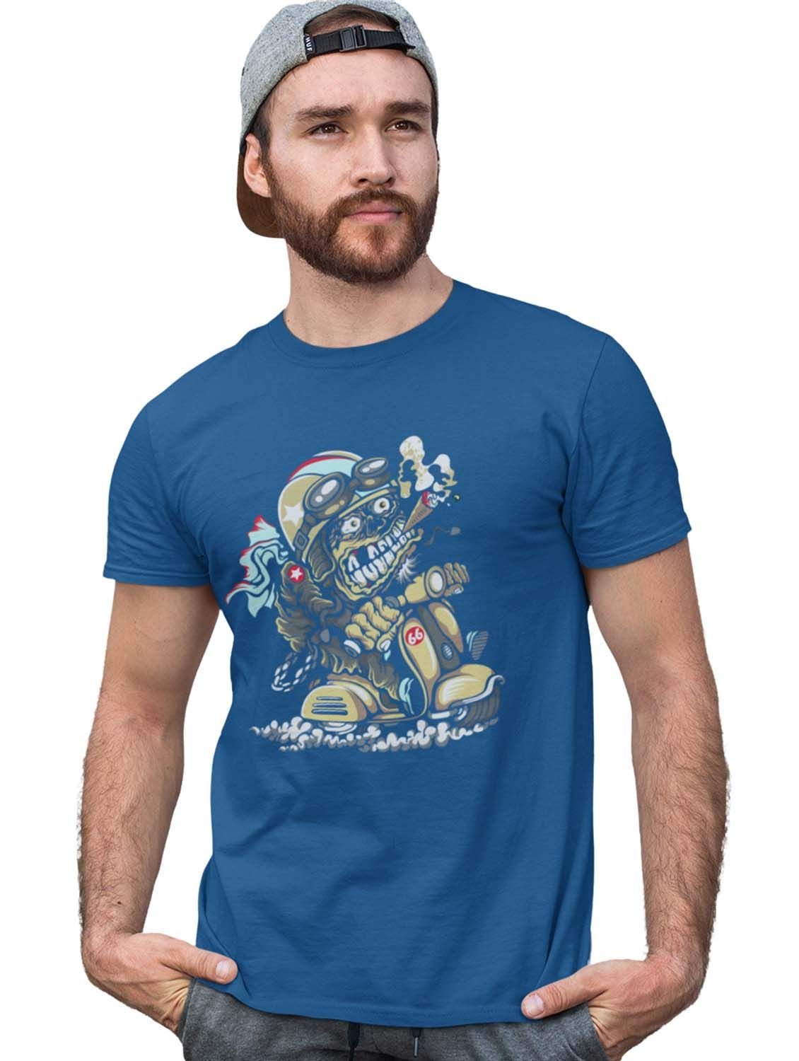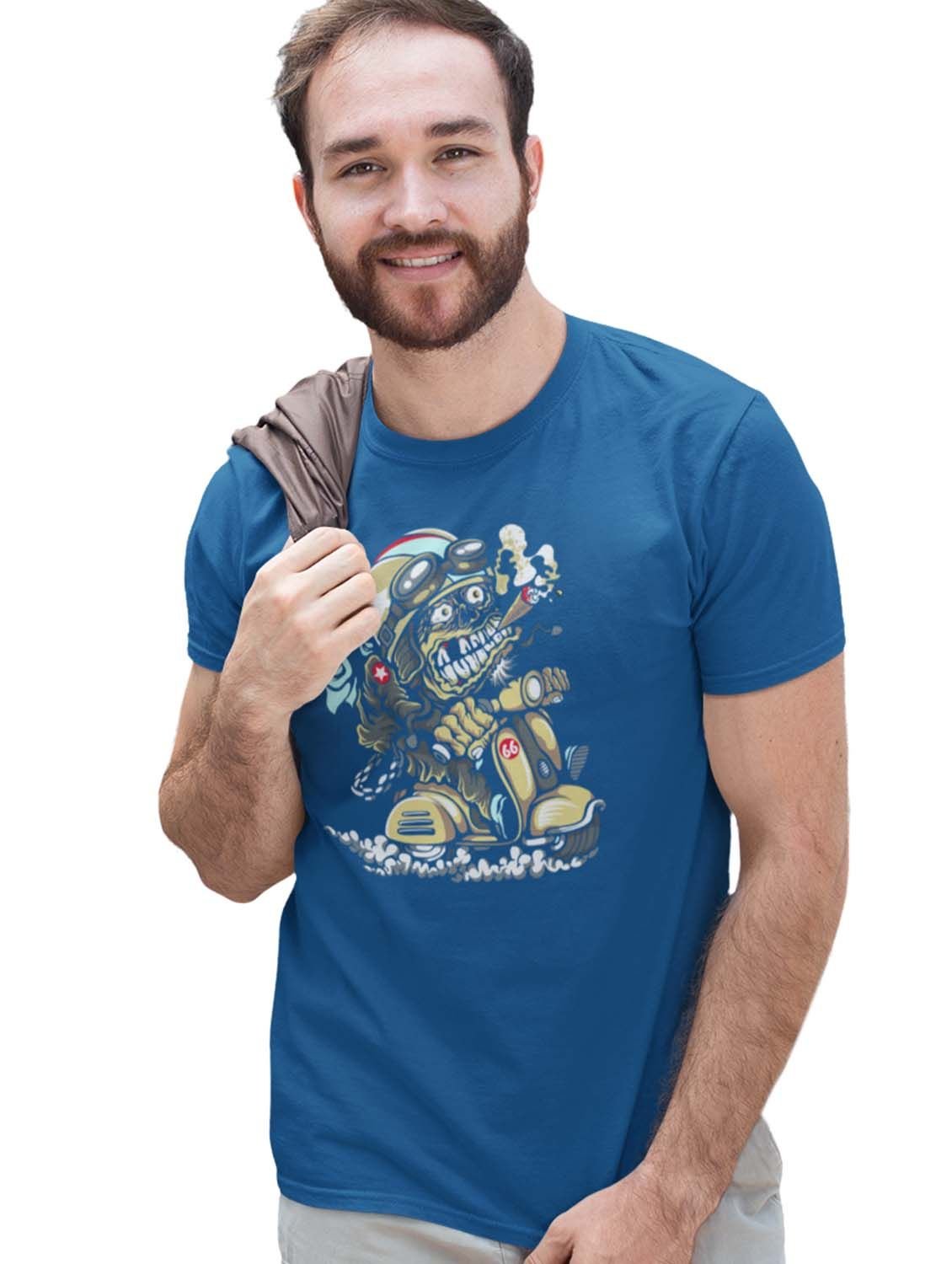 Demon- The Rider Blue Round Neck Cotton Half Sleeved T-Shirt with Printed Graphics