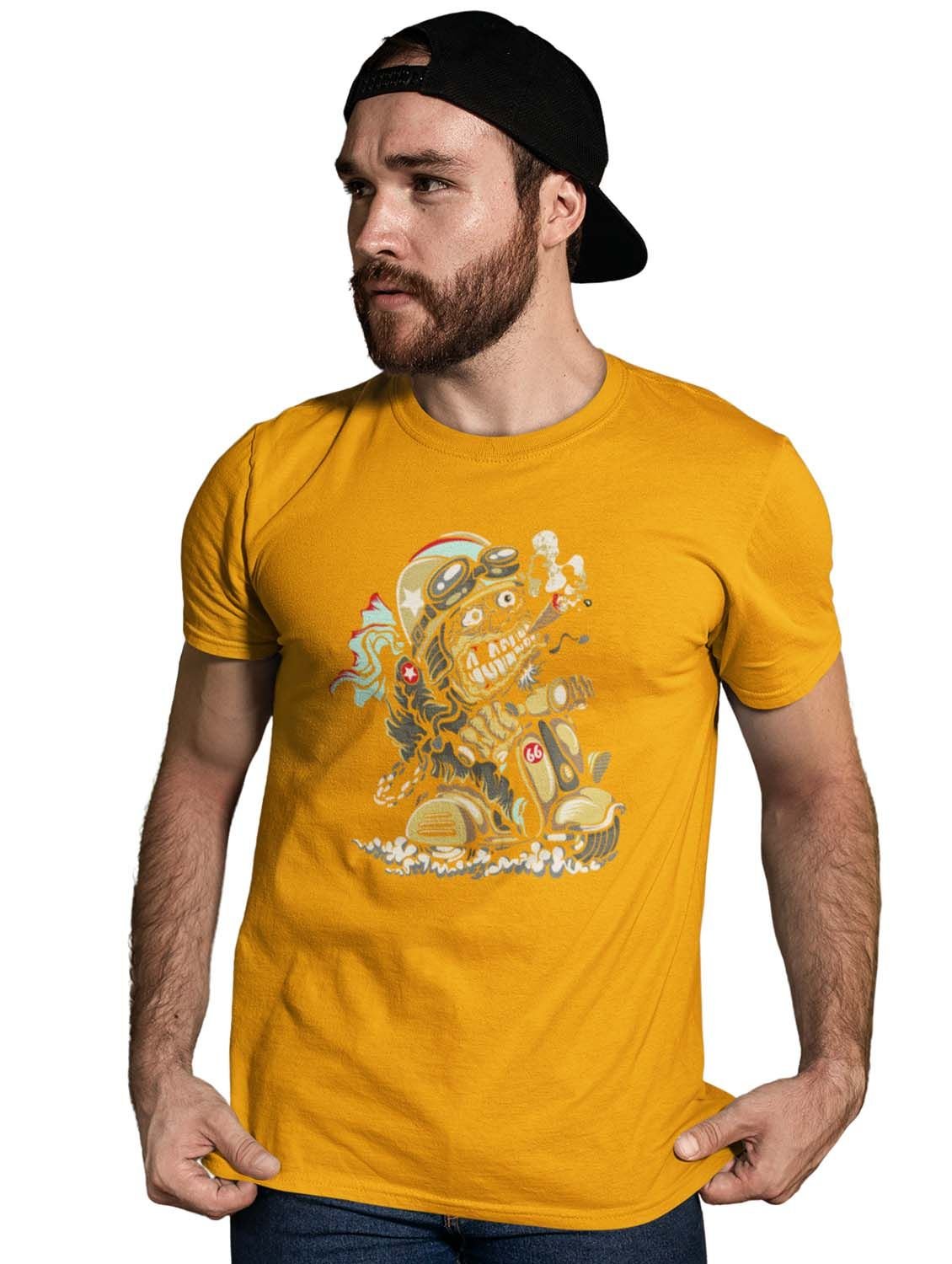 Demon- The Rider Graphic Printed Yellow Cotton Round Neck Half Sleeves Tshirt