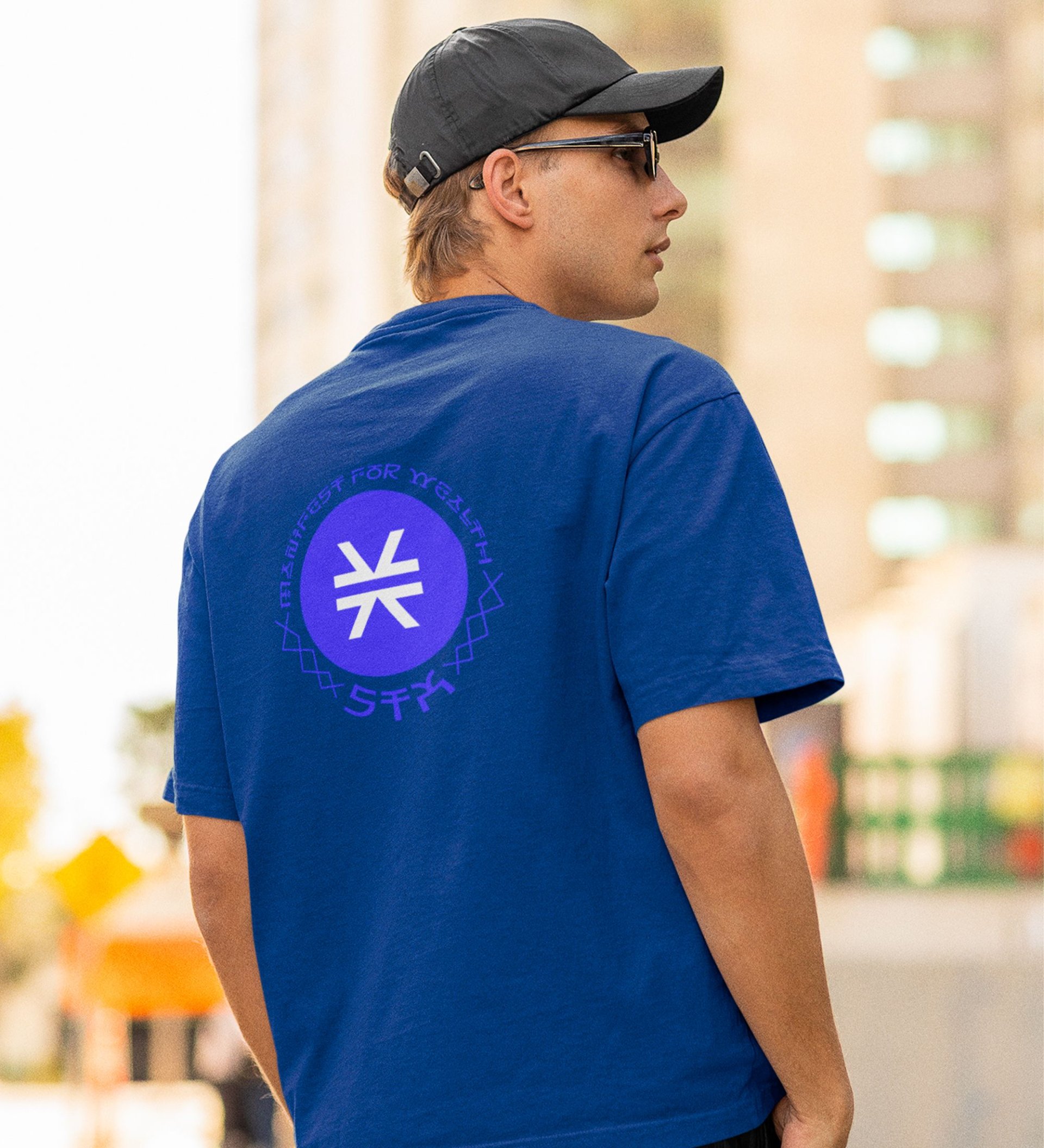 Manifest For Wealth Wings Blue Round Neck Cotton Half Sleeved Men's T Shirt with Printed Graphics
