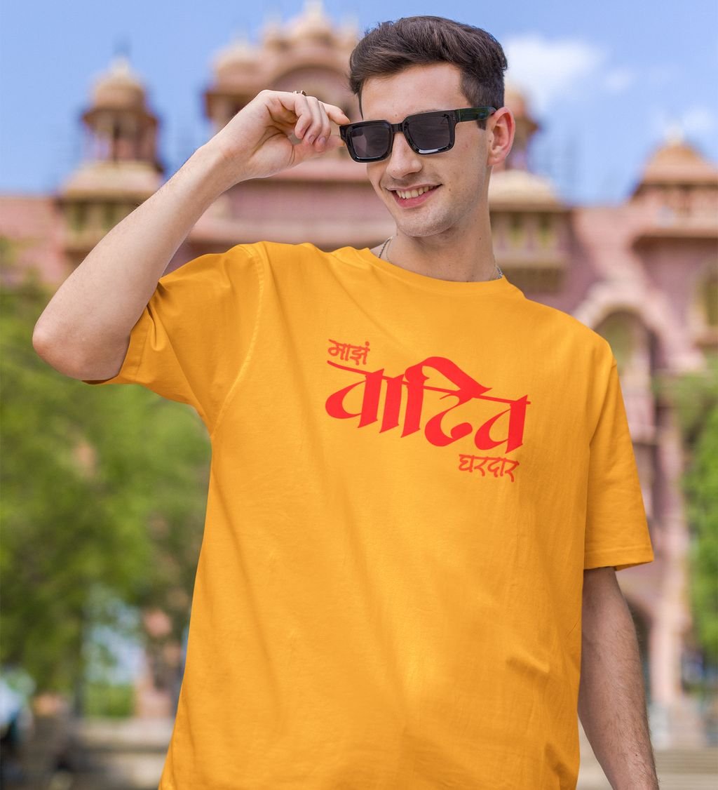 Maratha Family Yellow Round Neck Cotton Half Sleeved Men T Shirt with Printed Graphics