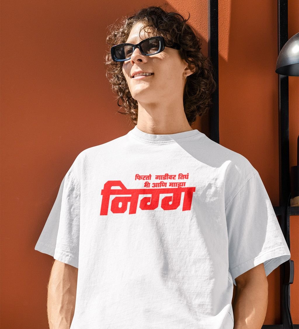 Marathi Frienship Quote White Round Neck Cotton Half Sleeved Men T Shirt with Printed Graphics