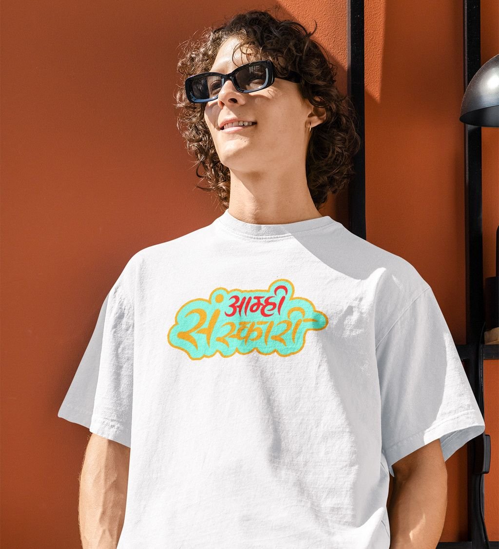 Marathi Masti White Round Neck Cotton Half Sleeved Men T Shirt with Printed Graphics