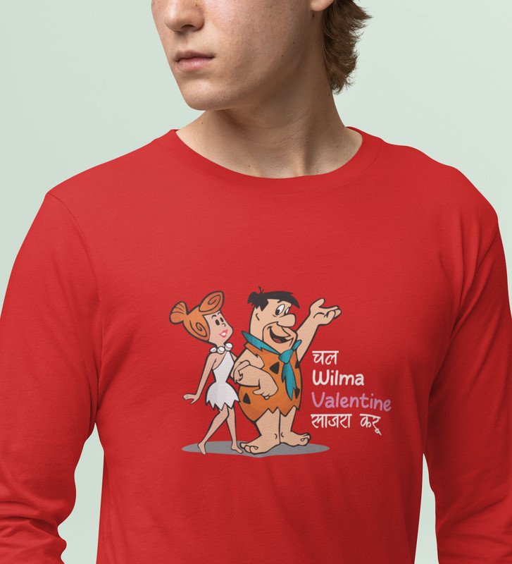 Marathi StoneAge Man: (red) Full Sleeve T-Shirt For Singles