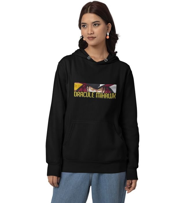 Masterful Warrior Eye Focused Power Cotton Black Hoodie for Women