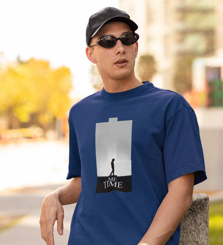 Me Myself And I, City Slicker: Blue Men's Oversized Tee with Trendy Front Print Detail