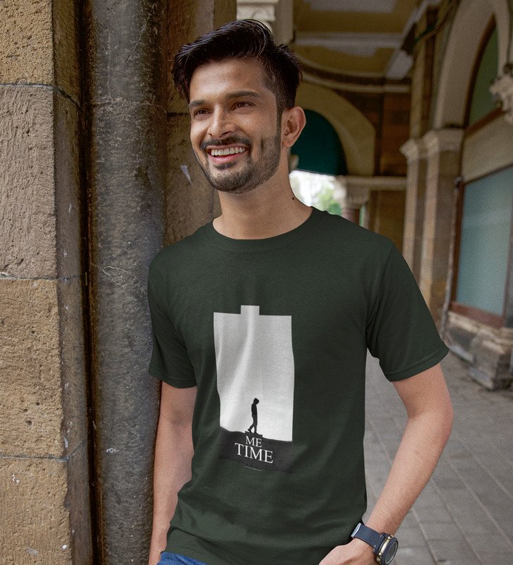Me Myself And I, City Slicker: Green Men's Oversized Tee with Trendy Front Print Detail