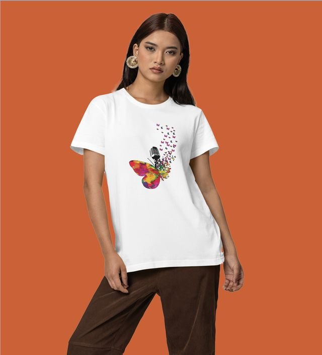 Melody in Motion: Artistic Butterfly and Sound Graphic Printed Black T-Shirt
