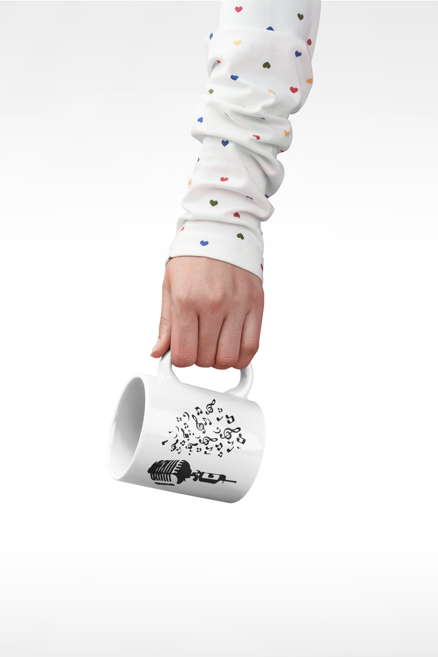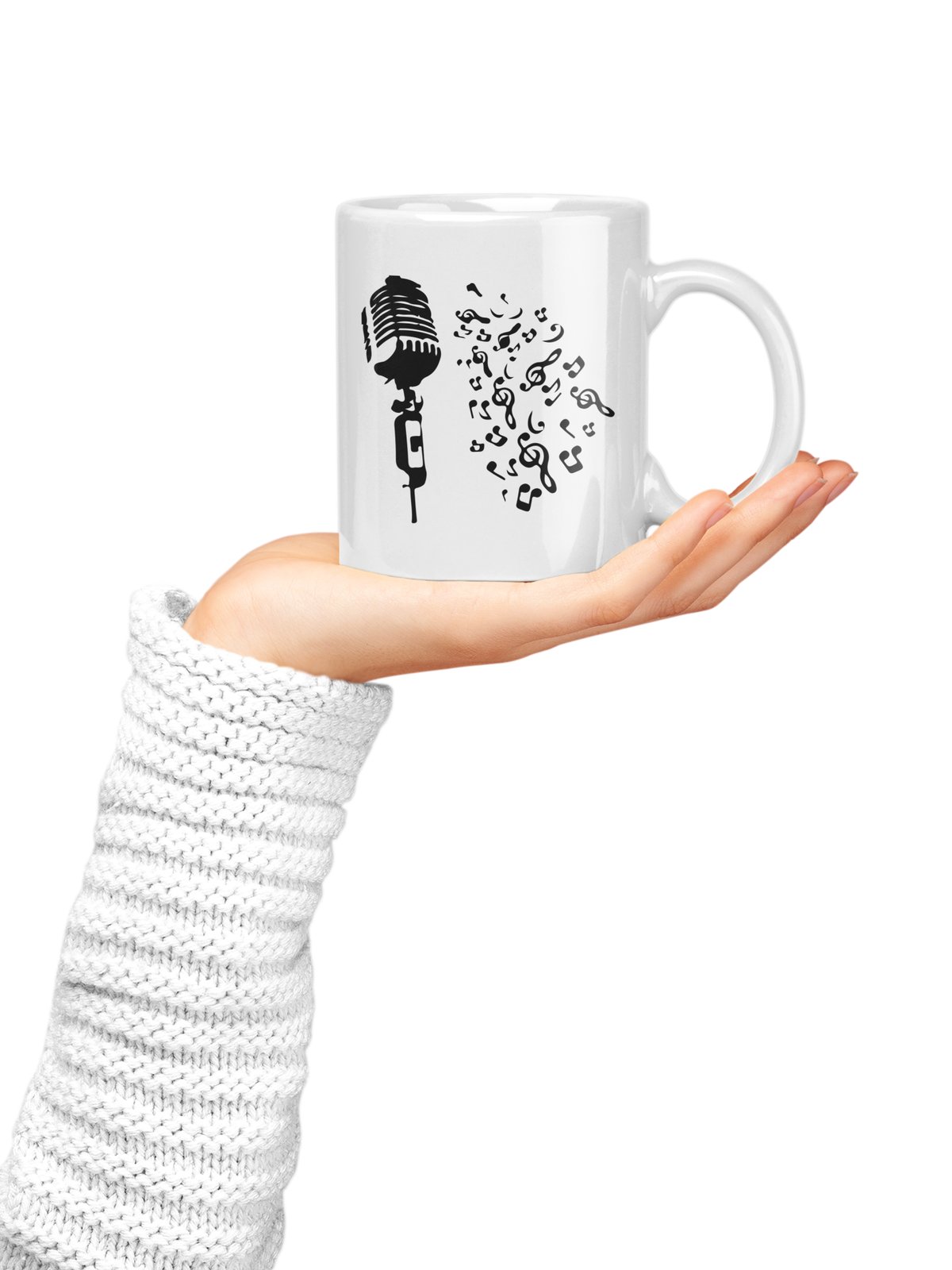 Microphone & Music Notes- music themed printed ceramic white coffee and tea mugs/ cups for music lovers
