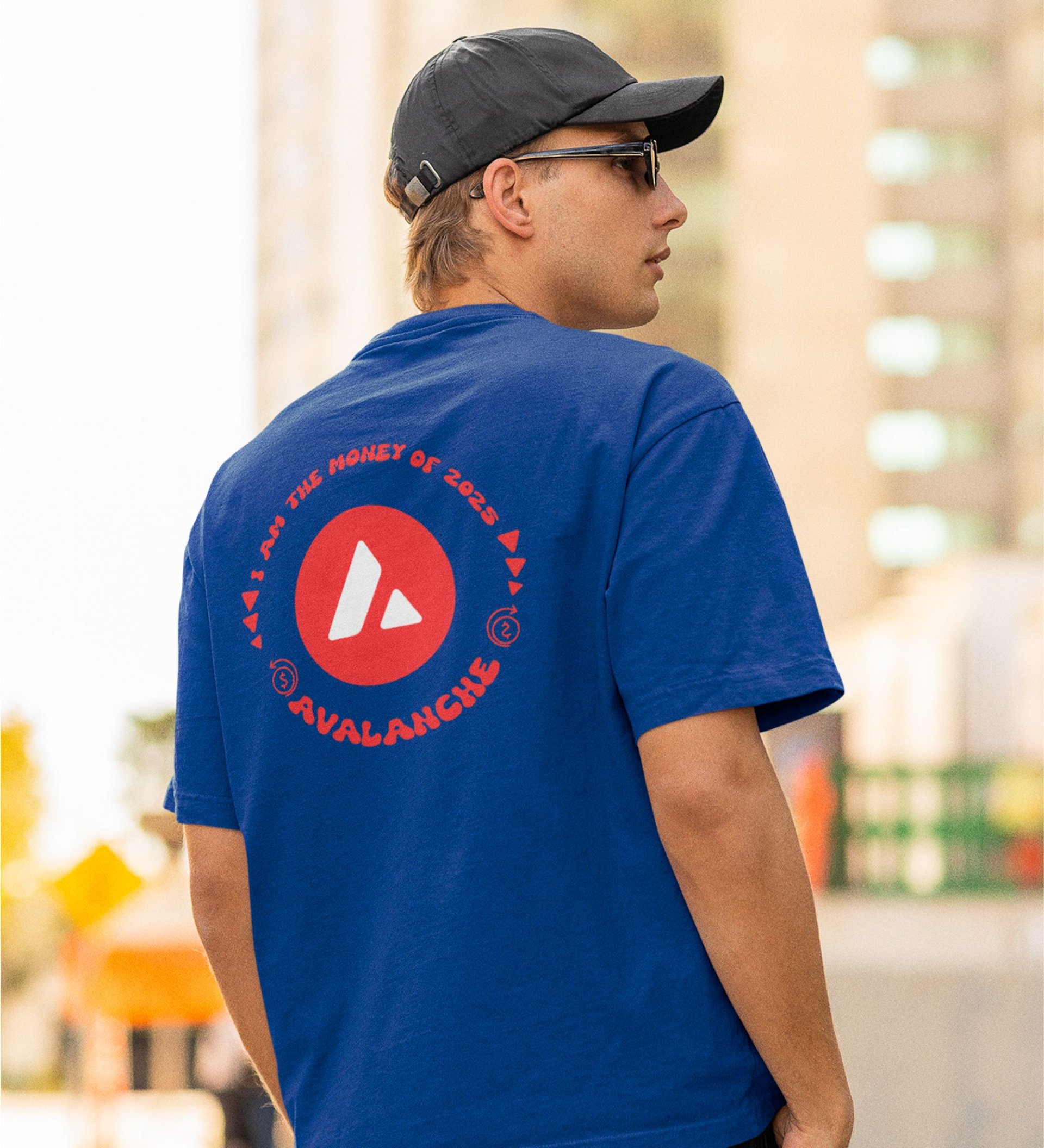 Money Of 2025 Wings Blue Round Neck Cotton Half Sleeved Men's T Shirt with Printed Graphics