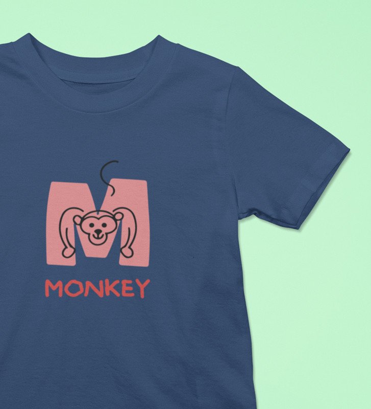 Monkey Love, Boys Cotton Text Print Tshirt (Navy blue)