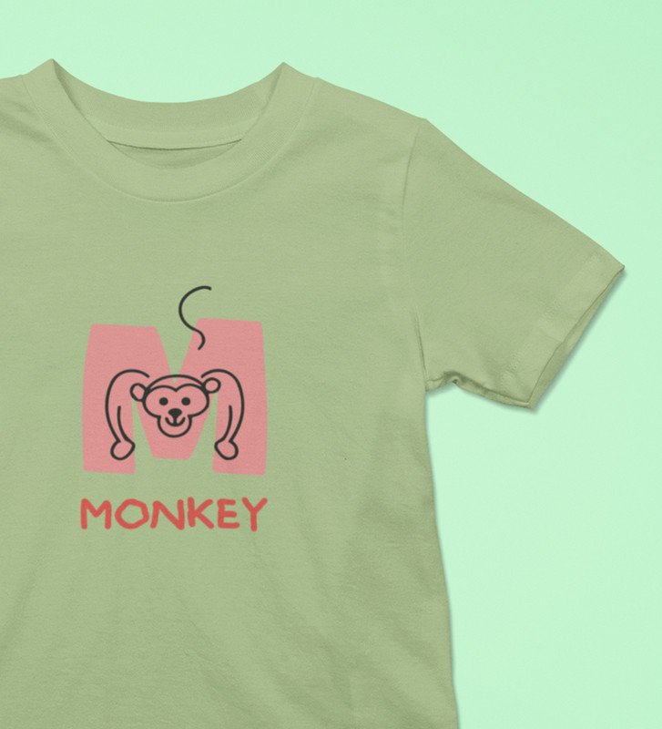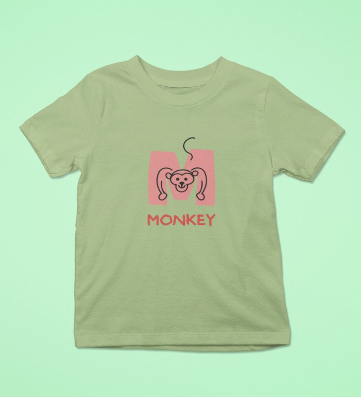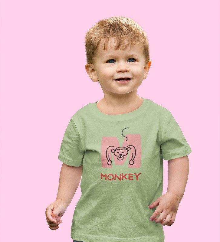 Monkey Love, Boys Cotton Text Print tshirt (olive)