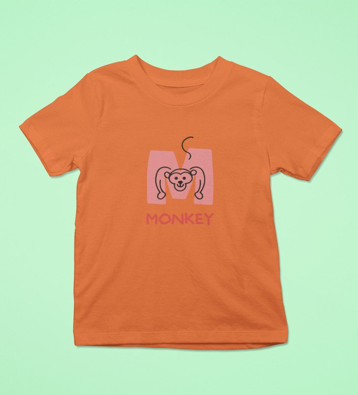Monkey Love, Boys Cotton Text Print Tshirt (Orange)